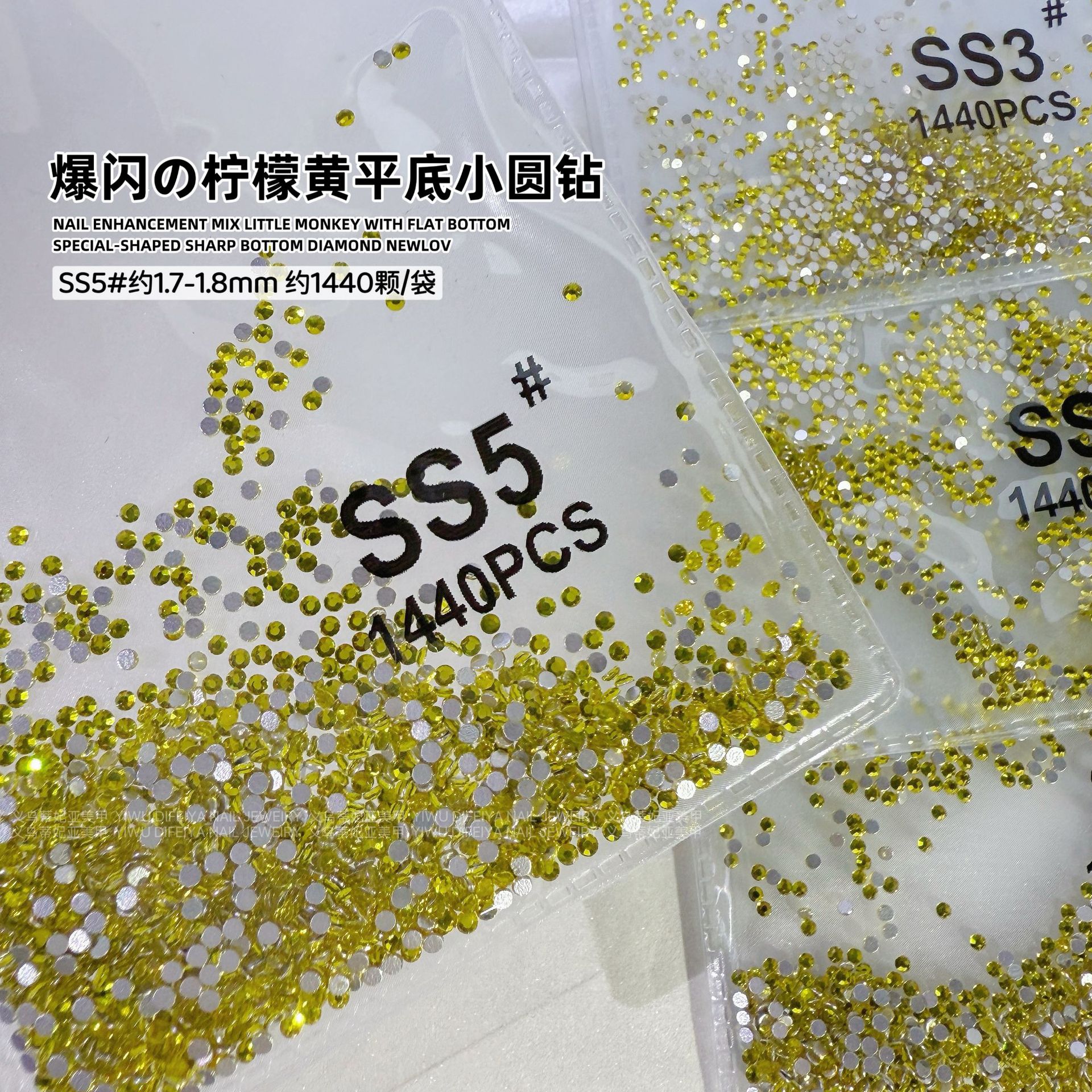 silver bottom lemon yellow ss5(1.7mm) about 1440 pcs/bag