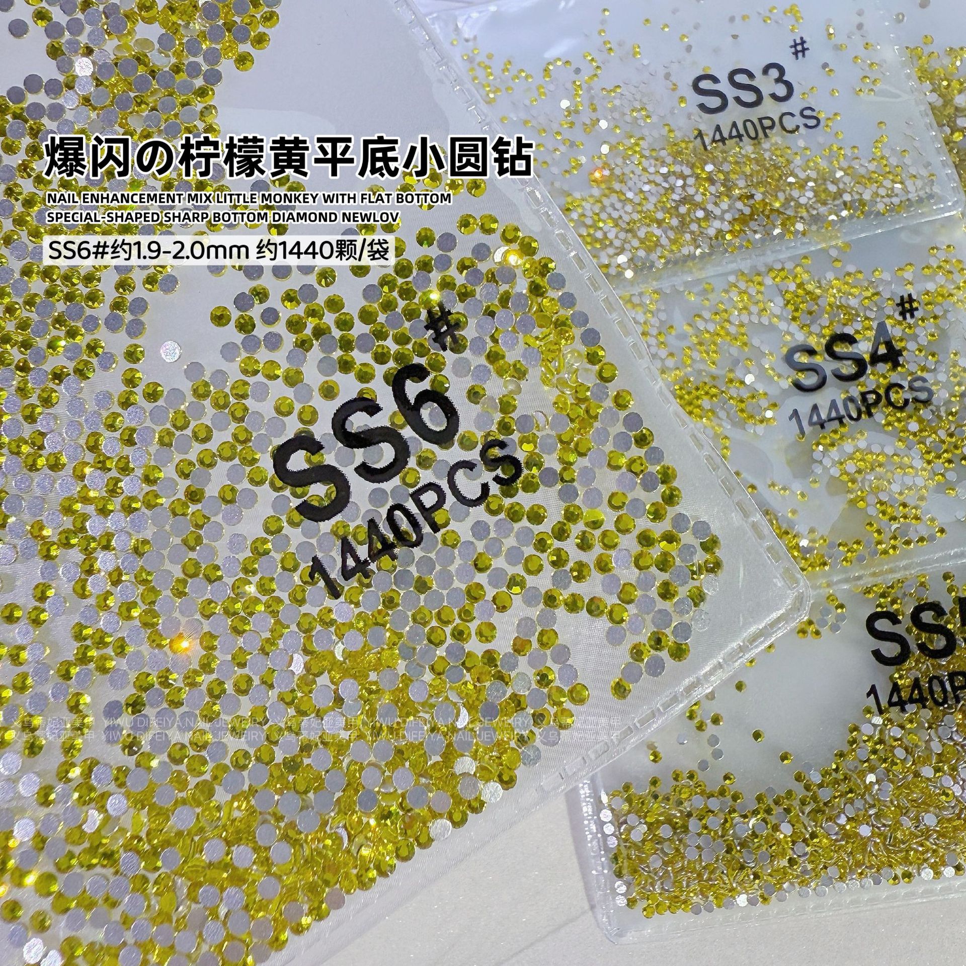 silver bottom lemon yellow ss6(2.0mm) about 1440 pcs/bag