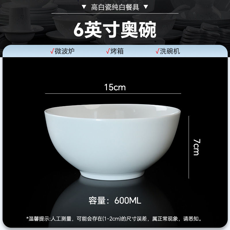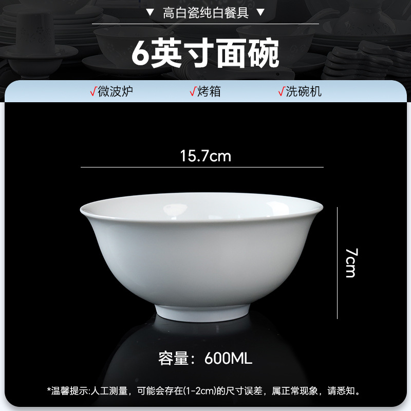 high temperature white porcelain-6-inch noodle bowl