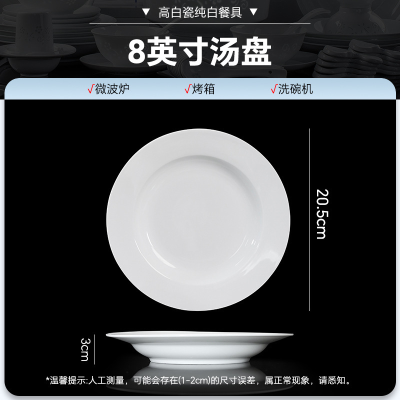 high temperature white porcelain-8-inch soup plate