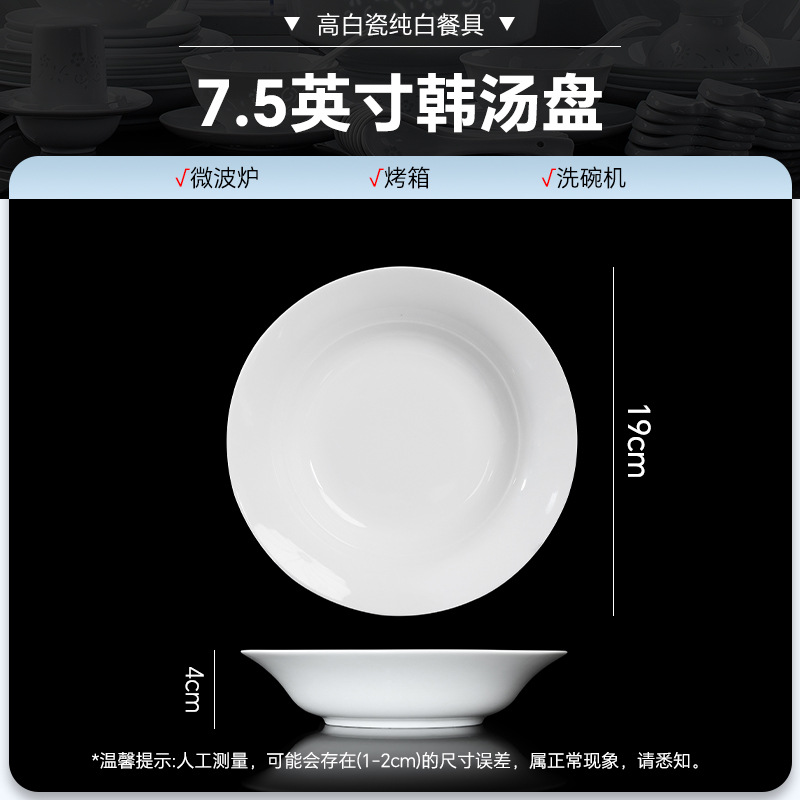 high temperature white porcelain-7.5-inch korean soup plate