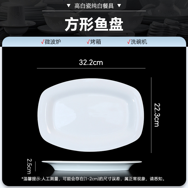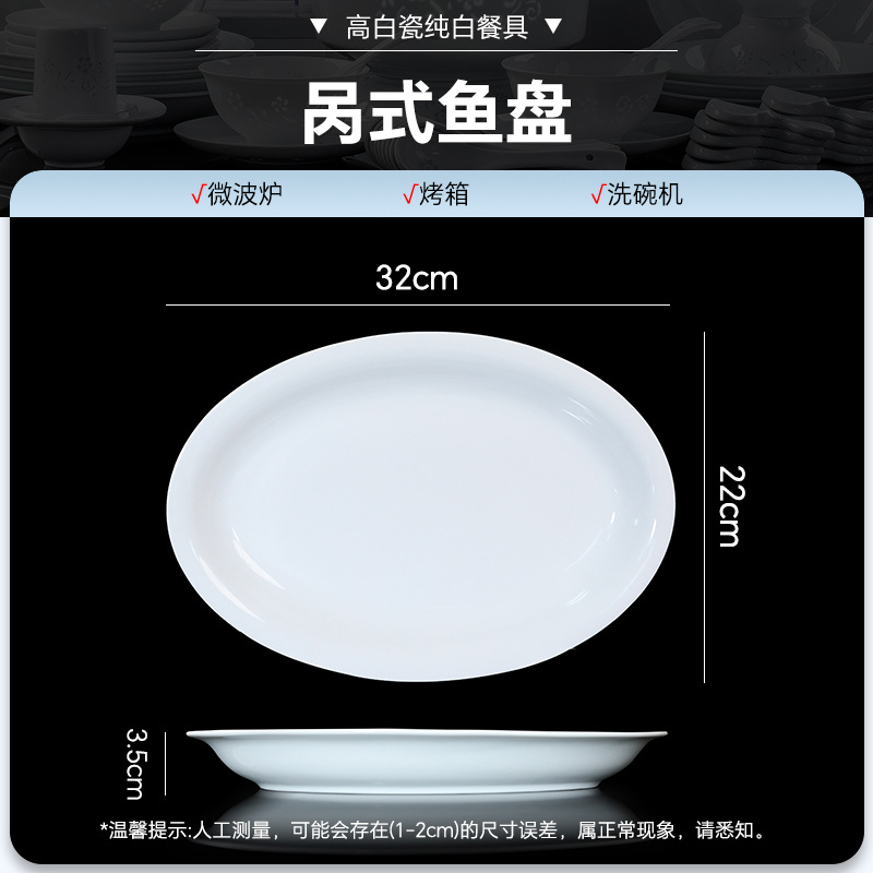 high temperature white porcelain-oval fish dish