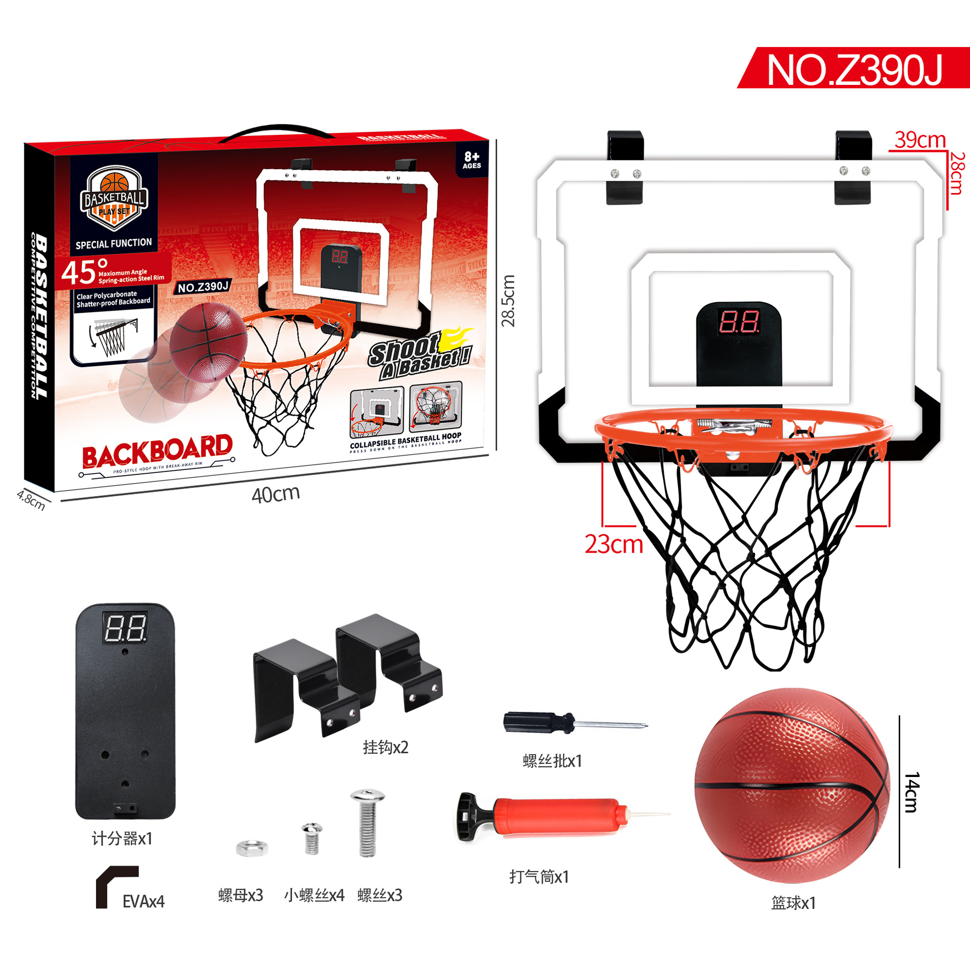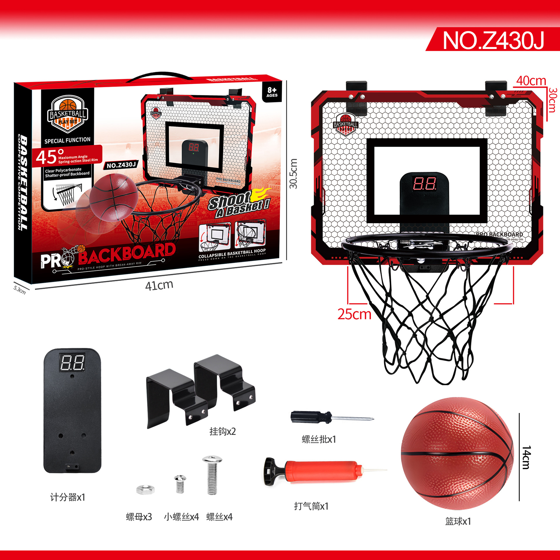 light folding scoreboard 40 * 30cm ball frame 25cm ball 16cm