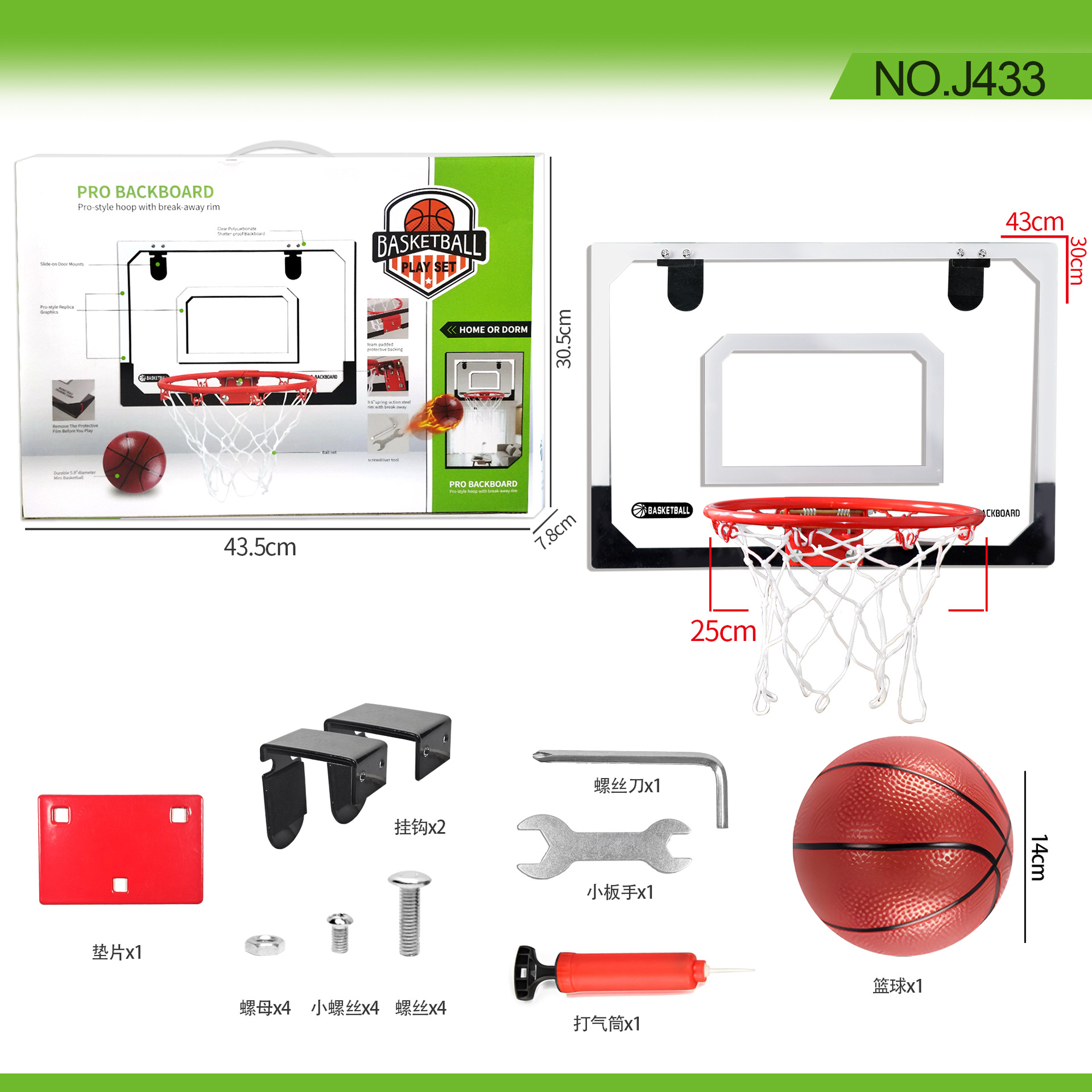 400 * 300mm dunk 21.5cm frame with 1 ball 14cm