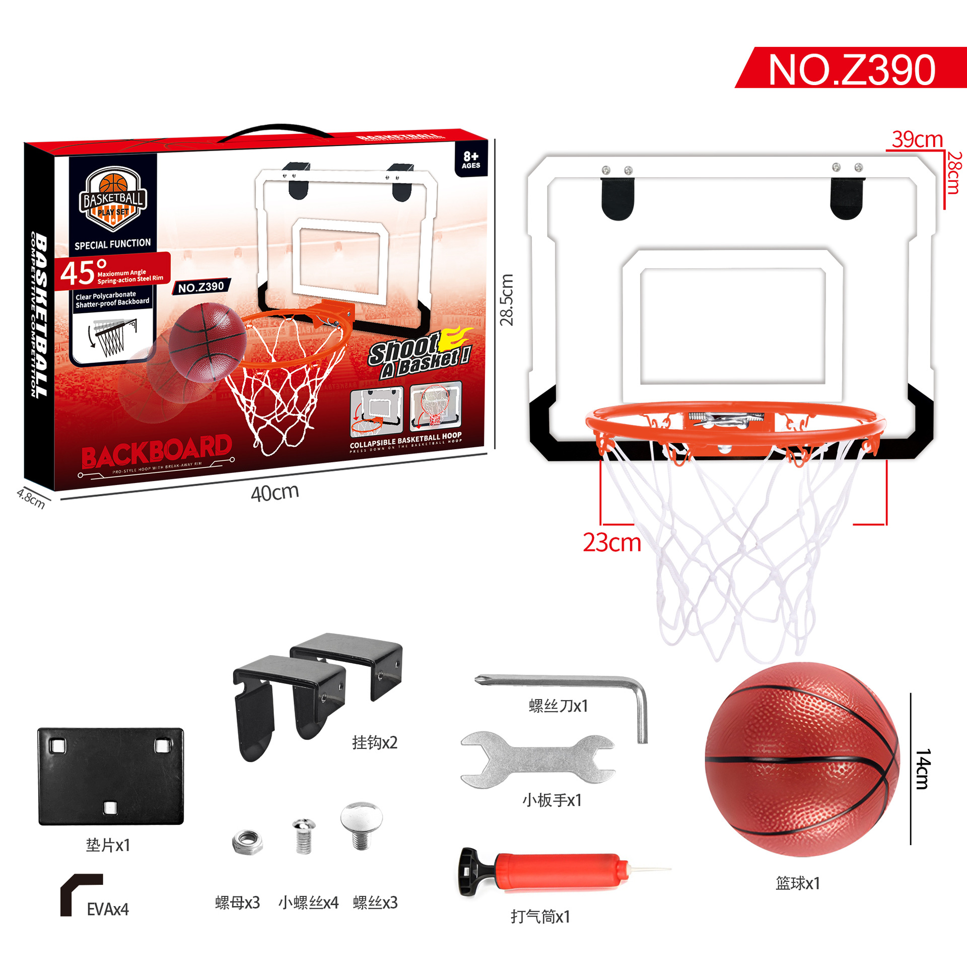 390mm * 280mm folding 23cm frame with 14cm ball 1