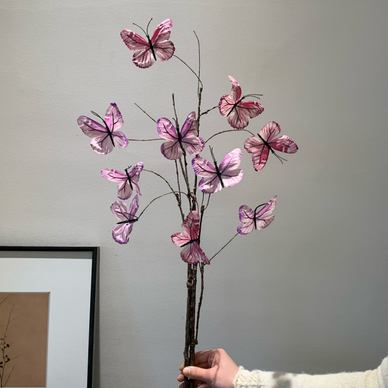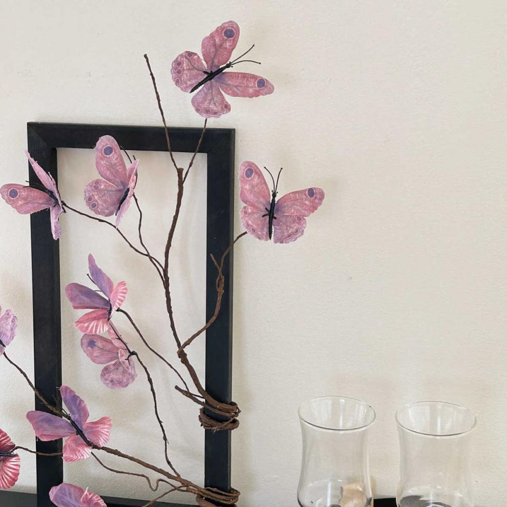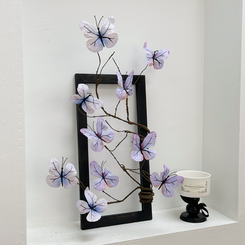 photo frame +2 artificial butterfly leaves (purple blue) with hooks