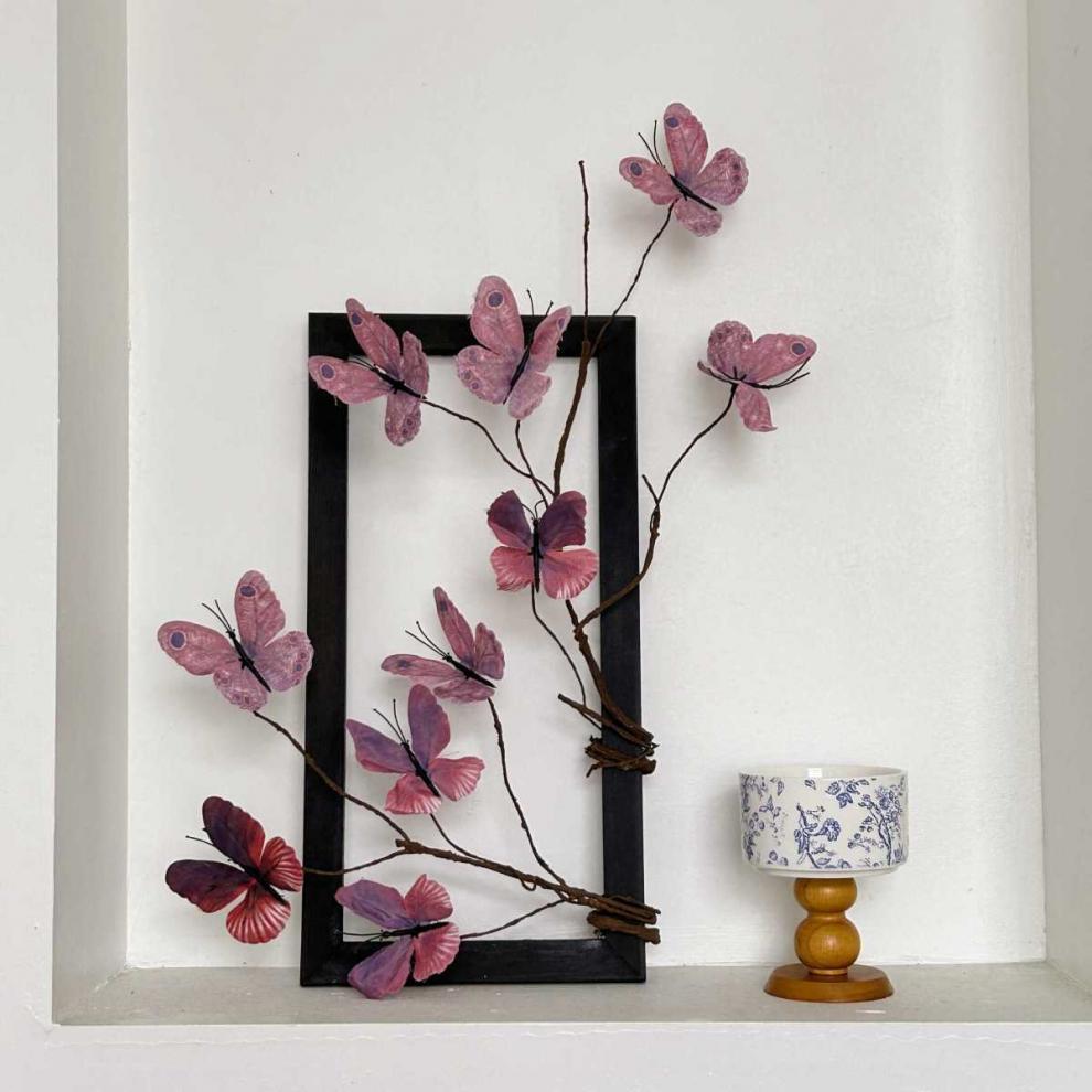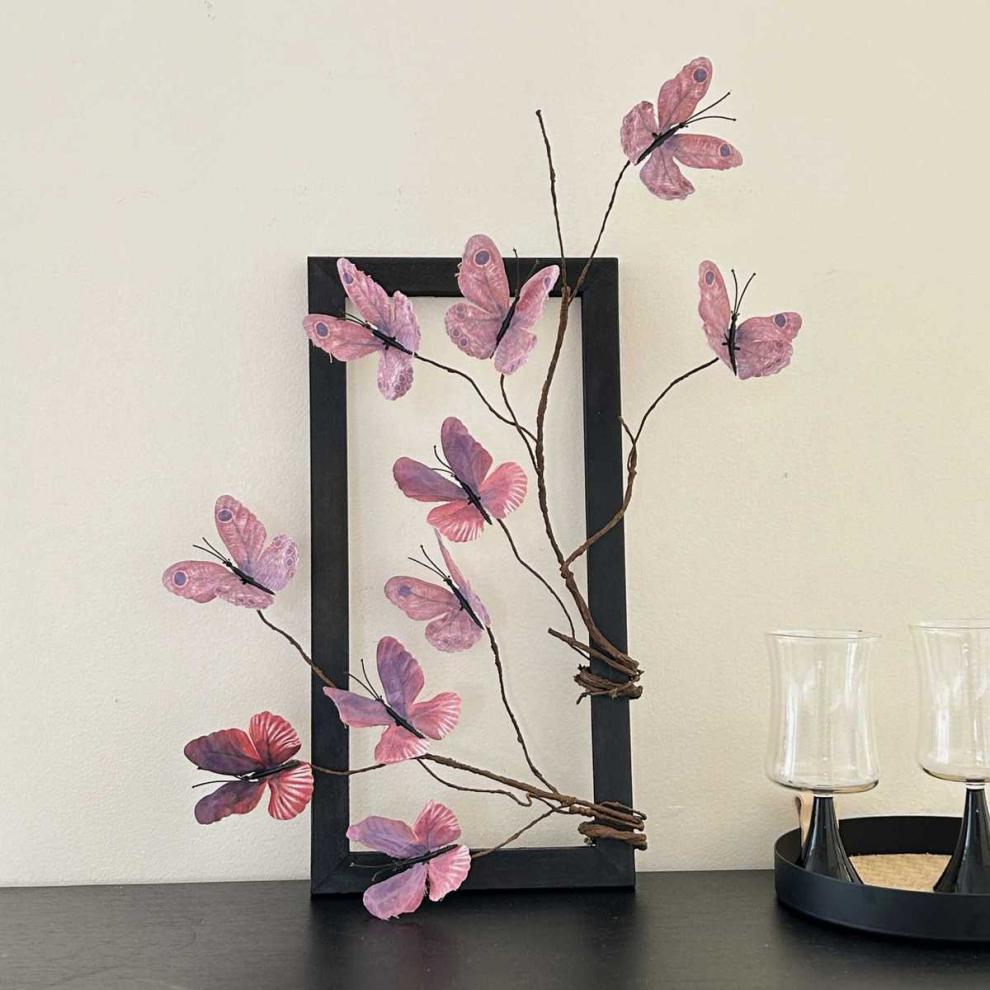 photo frame +2 artificial butterfly leaves (dark red) with hook