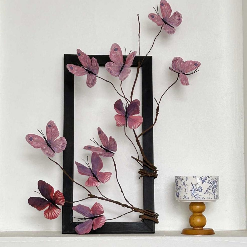 photo frame +2 artificial butterfly leaves (rose red) with hook