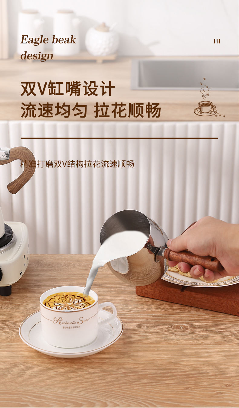 304#300ml long handle egg shape latte art milk cup (natural color)