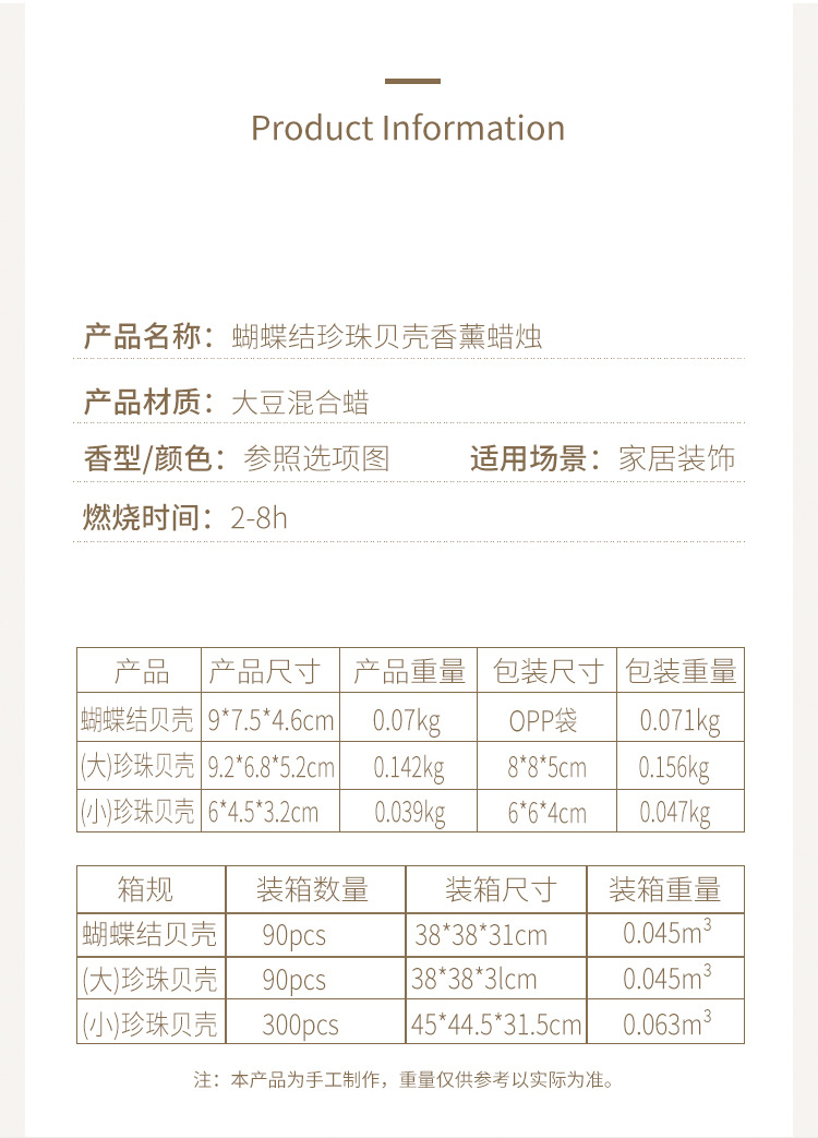 shell diy pearl candle large-9.2*6.8*5.2