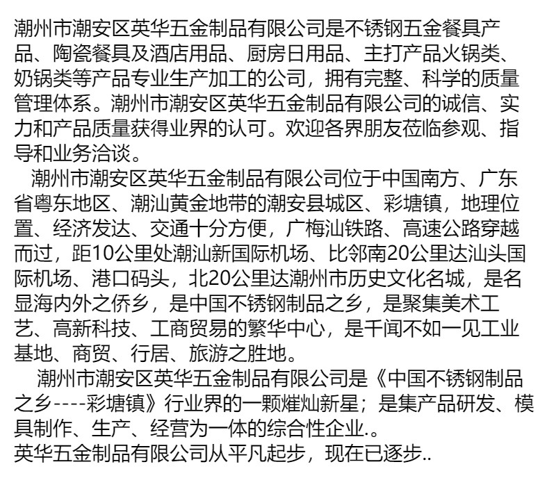 Yinghua Hardware Products Co., Ltd., Chao'an District, Guangdong Province 1yr.