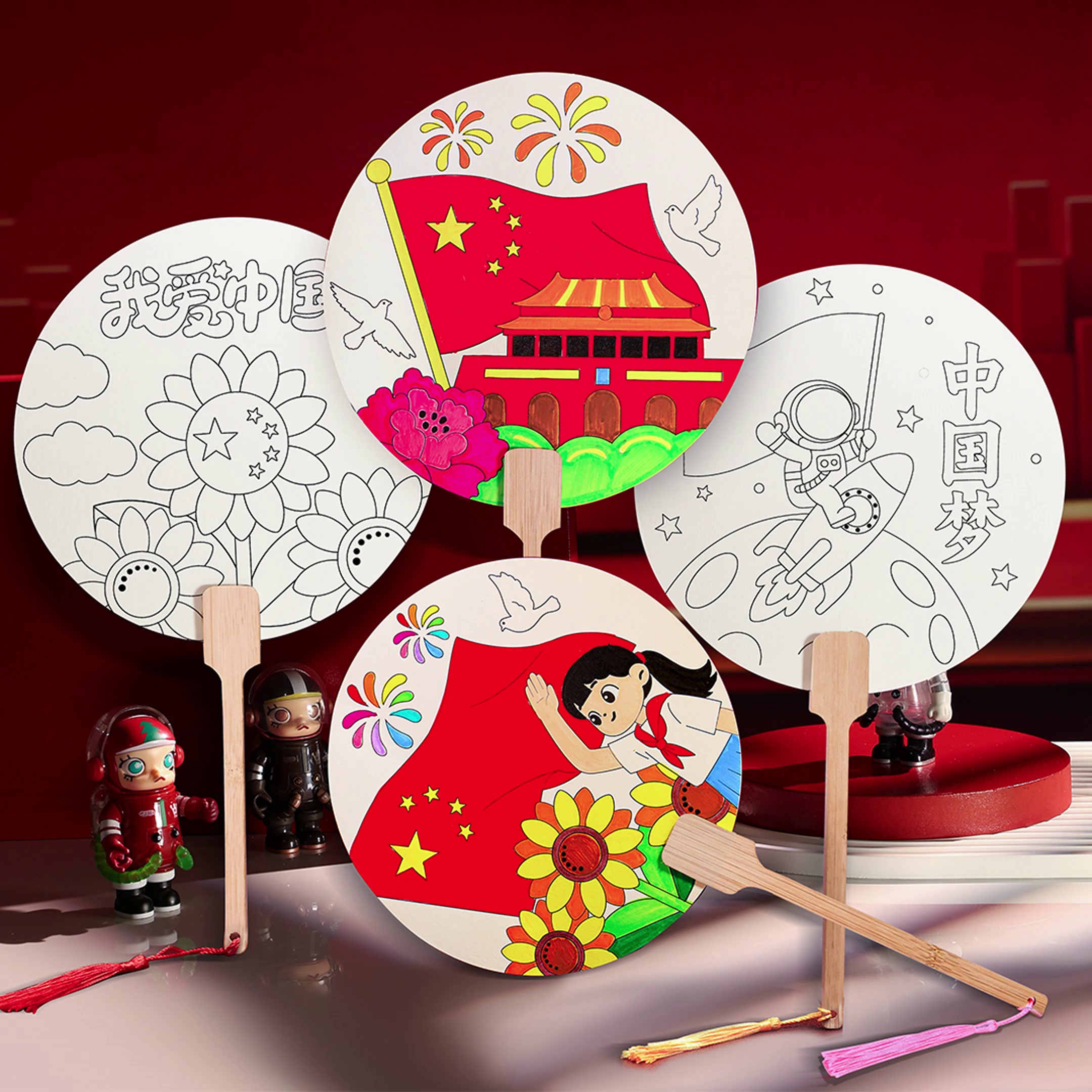 national day children's handmade diy painting graffiti circular fan material package kindergarten activity gift fan