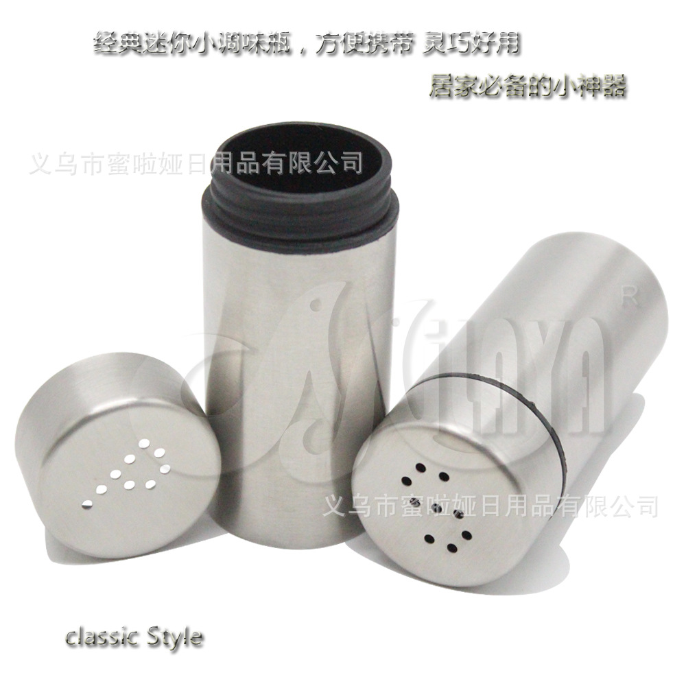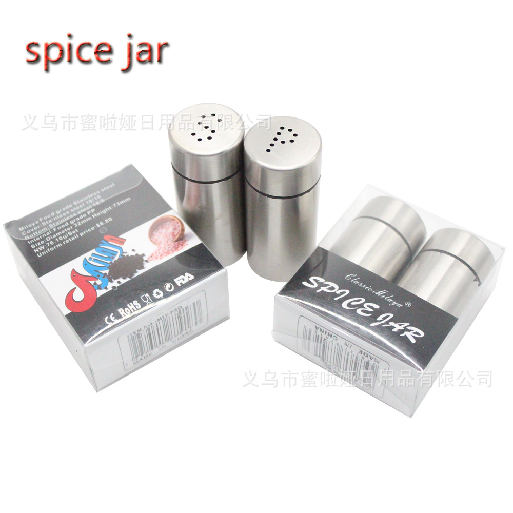 Milaya Food grade Stainless steel Cover:Stainless steel 18/10 Bottom:Stainless steel 18/8 Internal:Food grade PP Size:Diameter 32mm Height:73mm NW:76.10g/Set