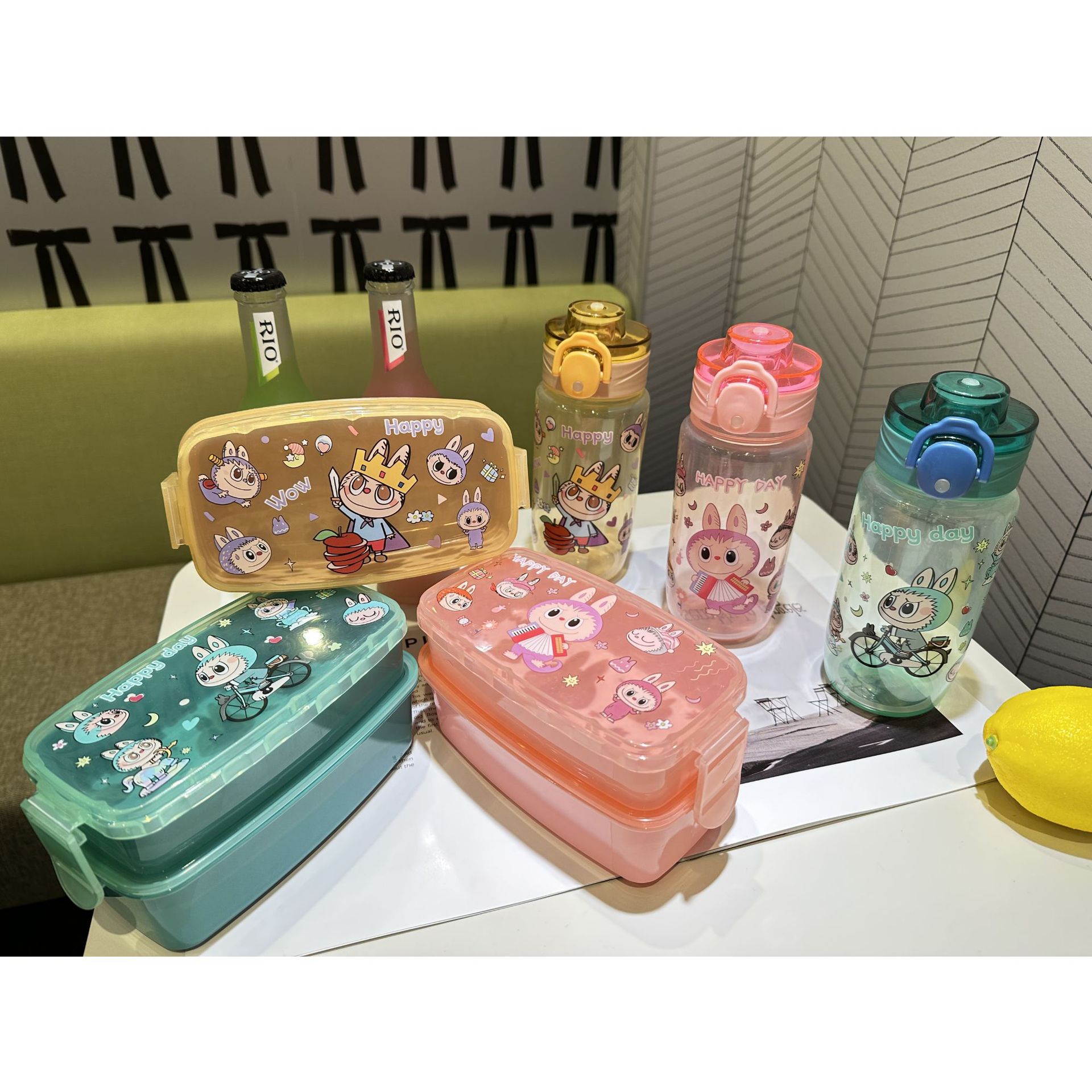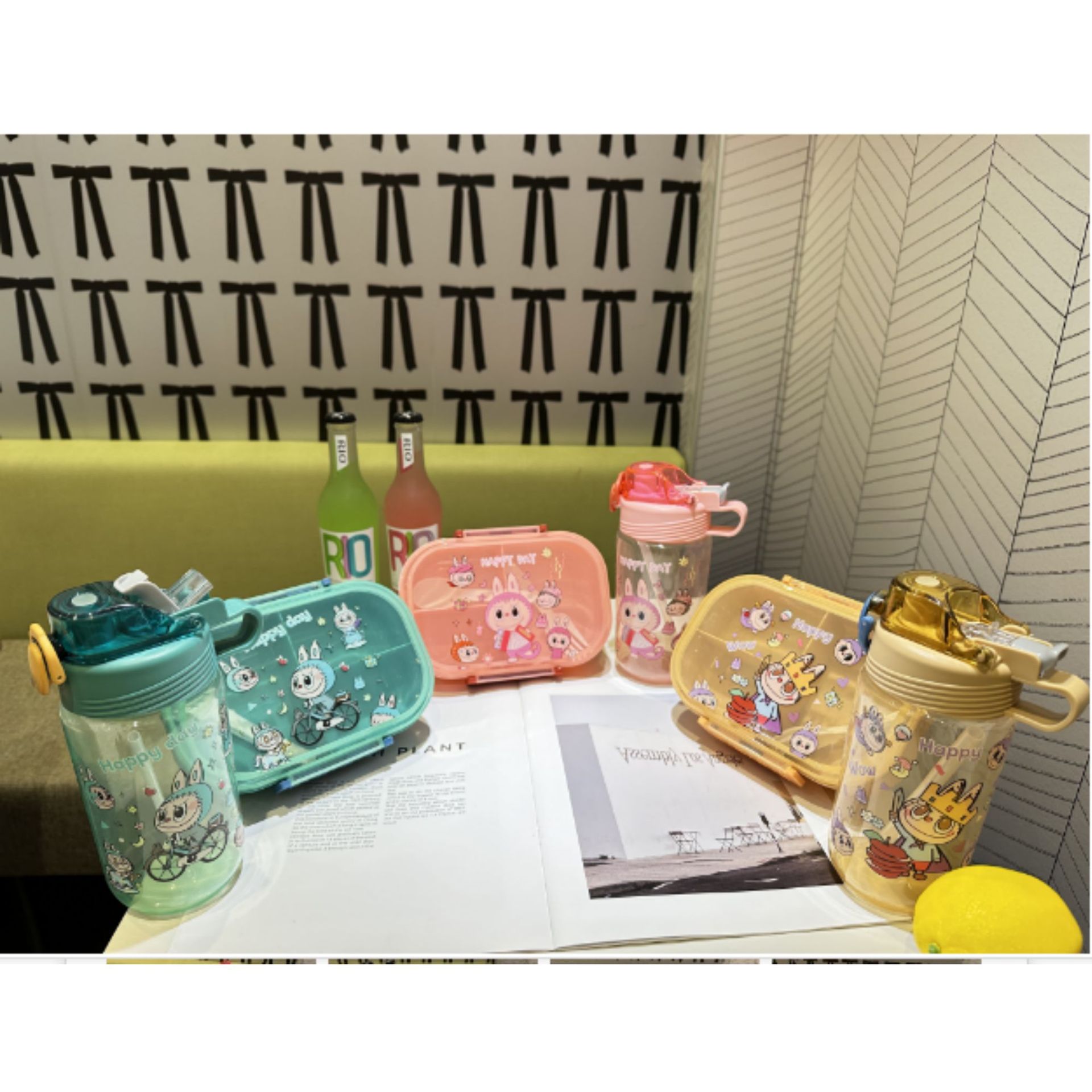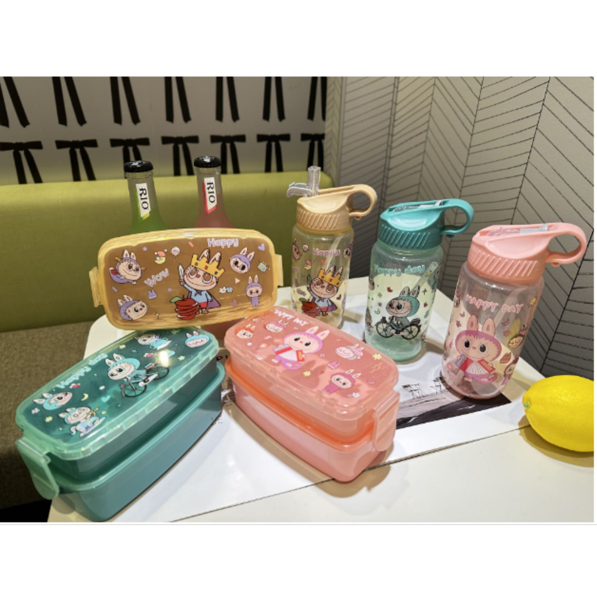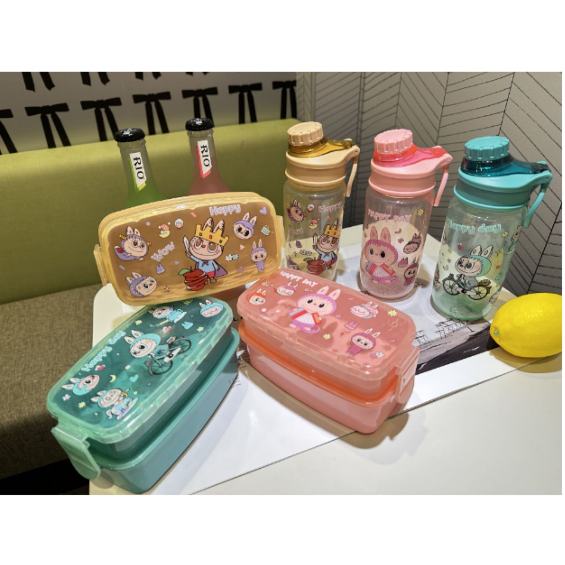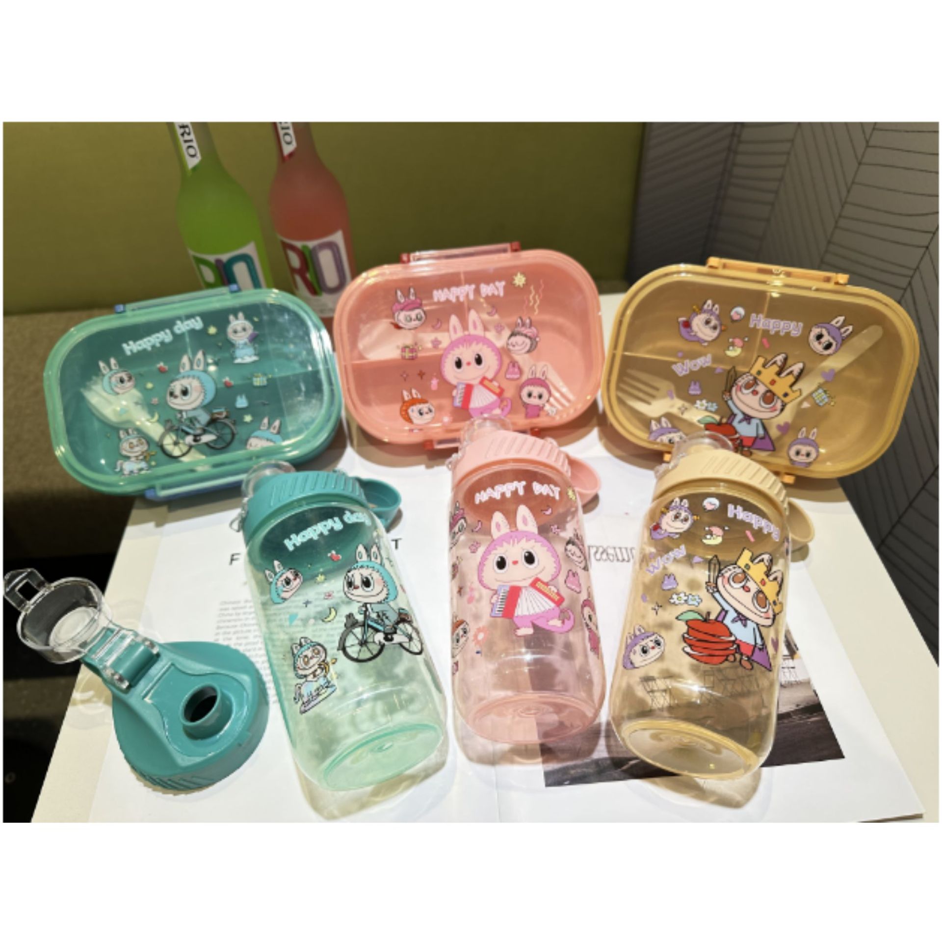 1510 factory direct sales in stock cross-border foreign trade new cute hot selling children's plastic cartoon kettle-lunch box suit