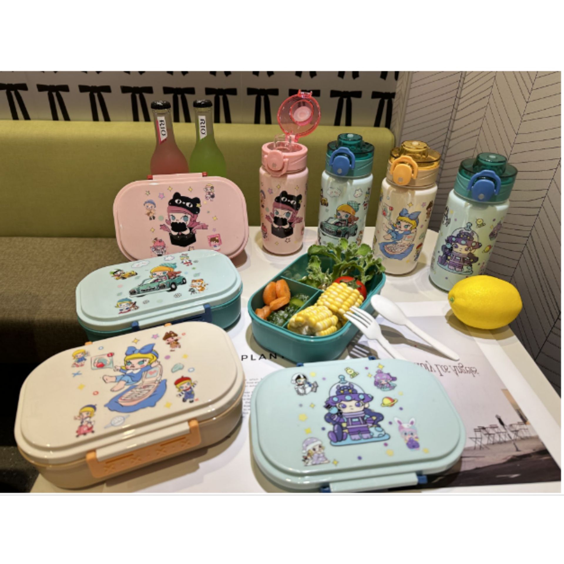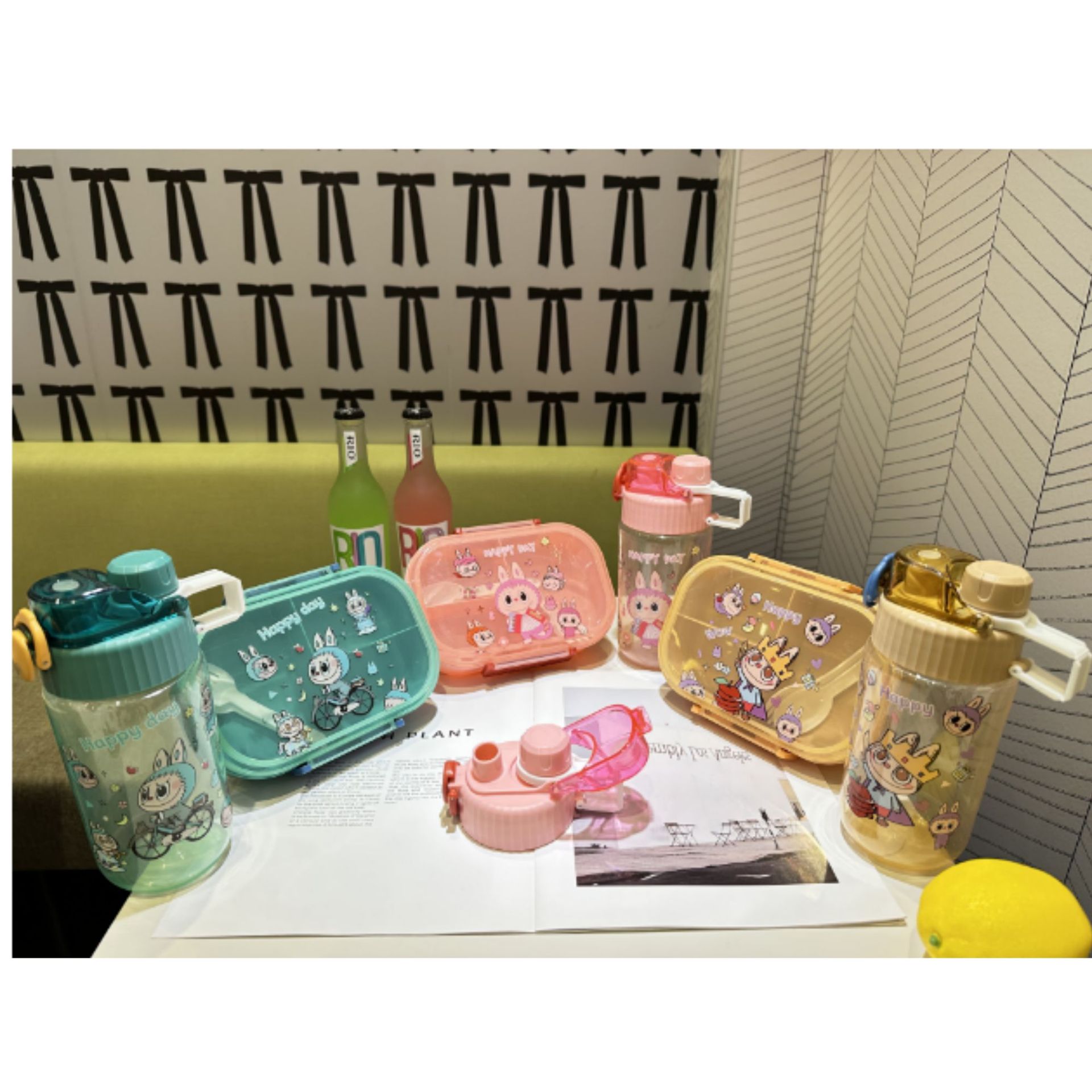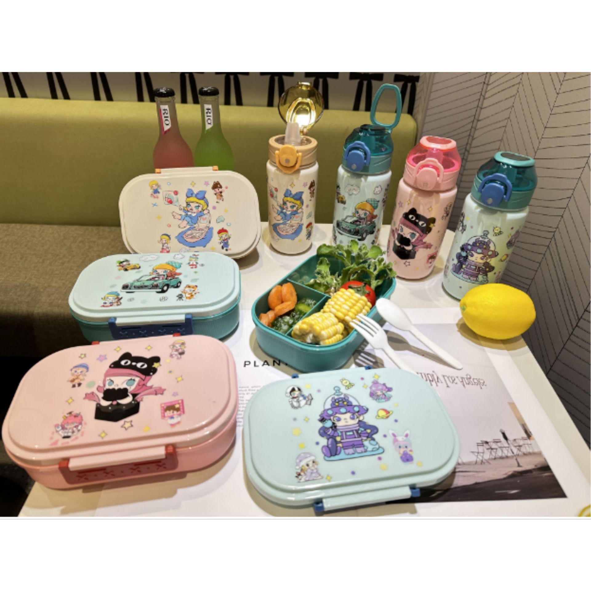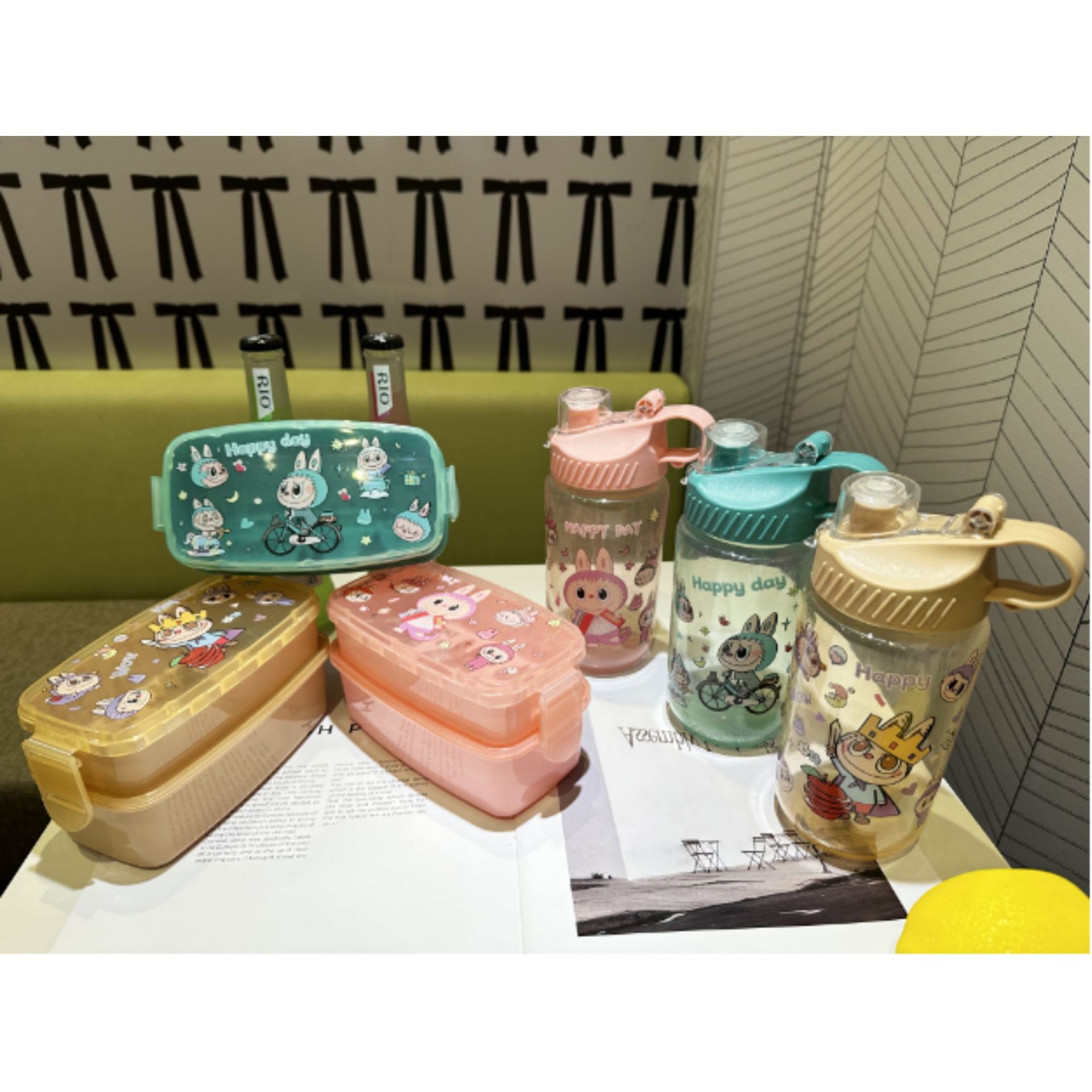 1510 factory direct sales in stock cross-border foreign trade new cute hot selling children's plastic cartoon kettle-lunch box suit