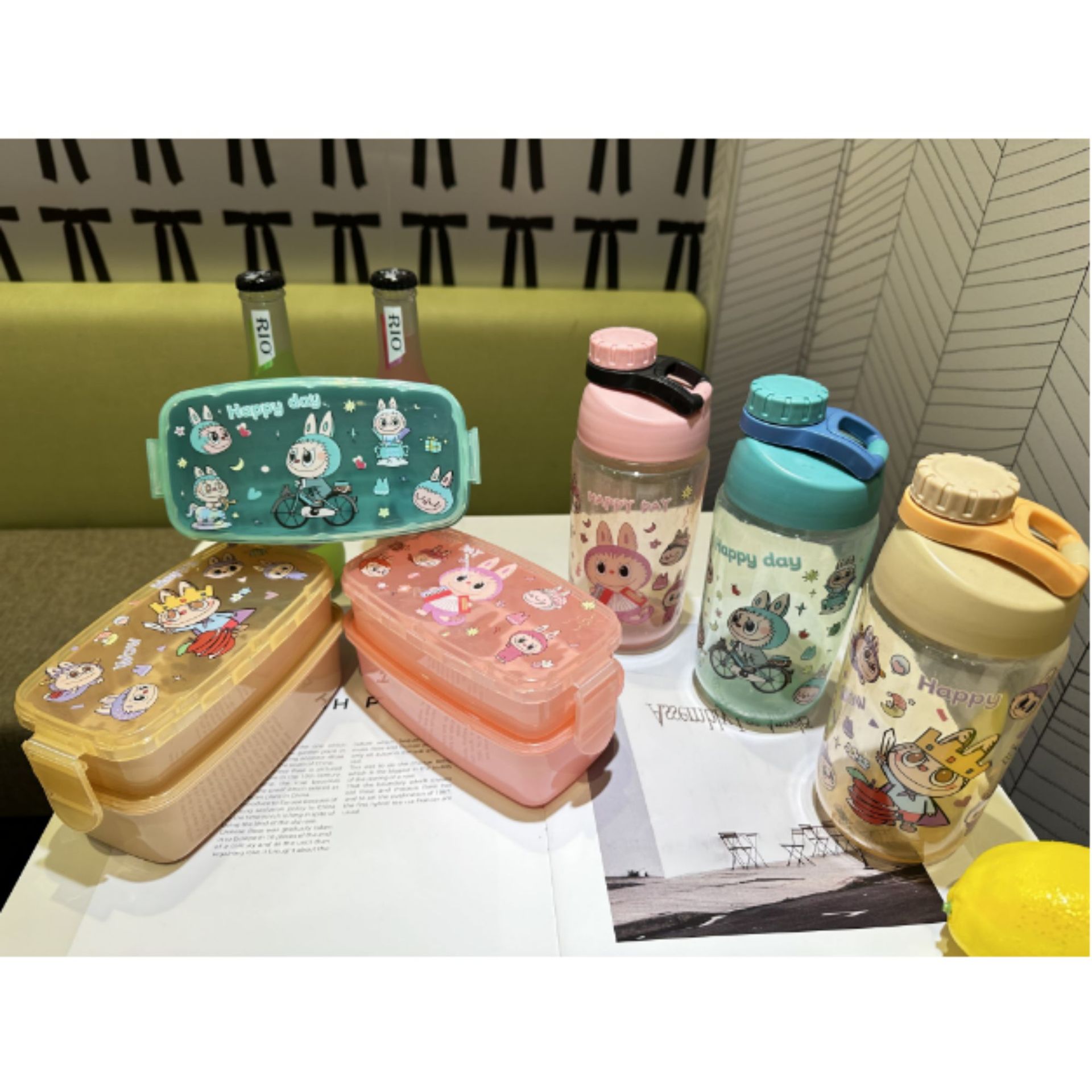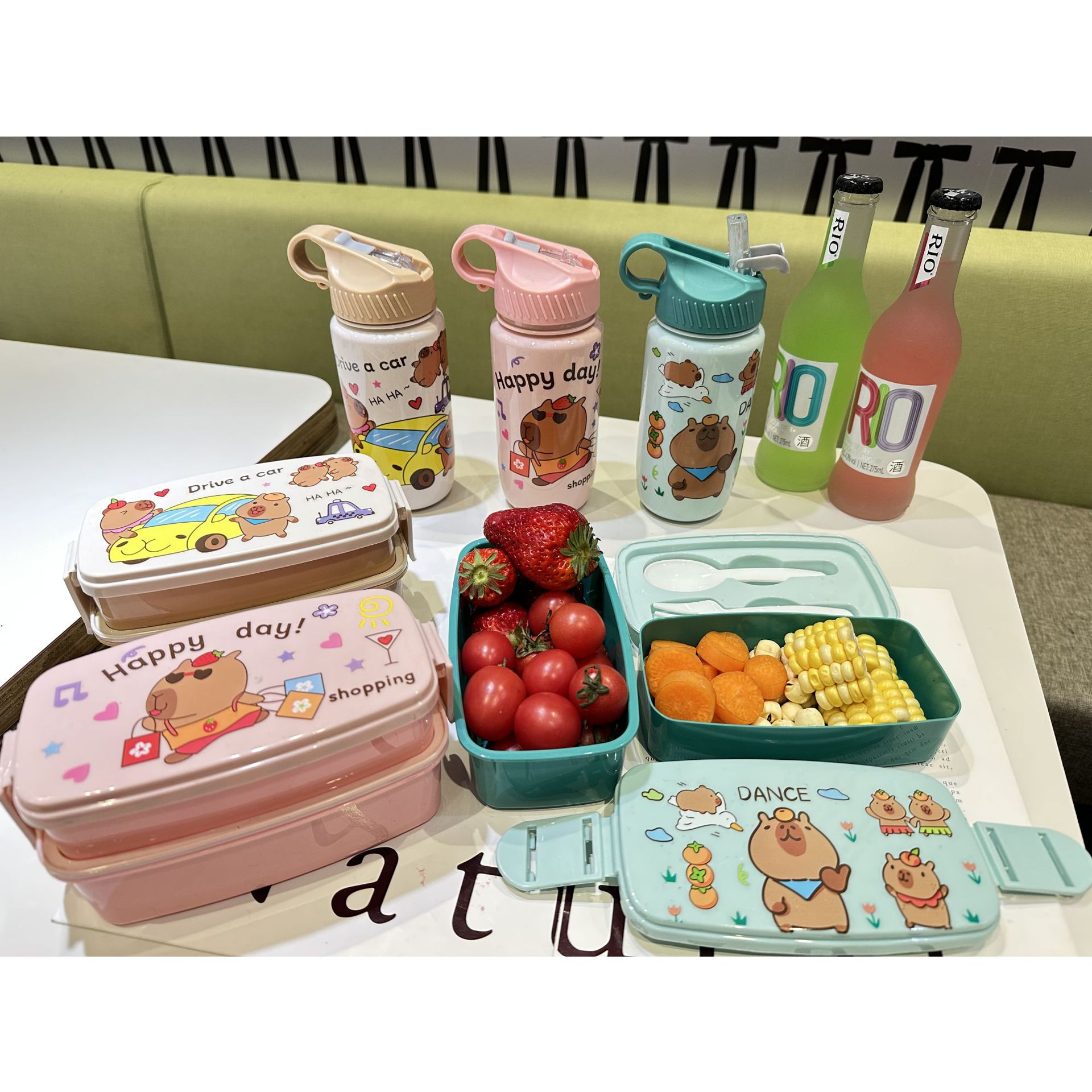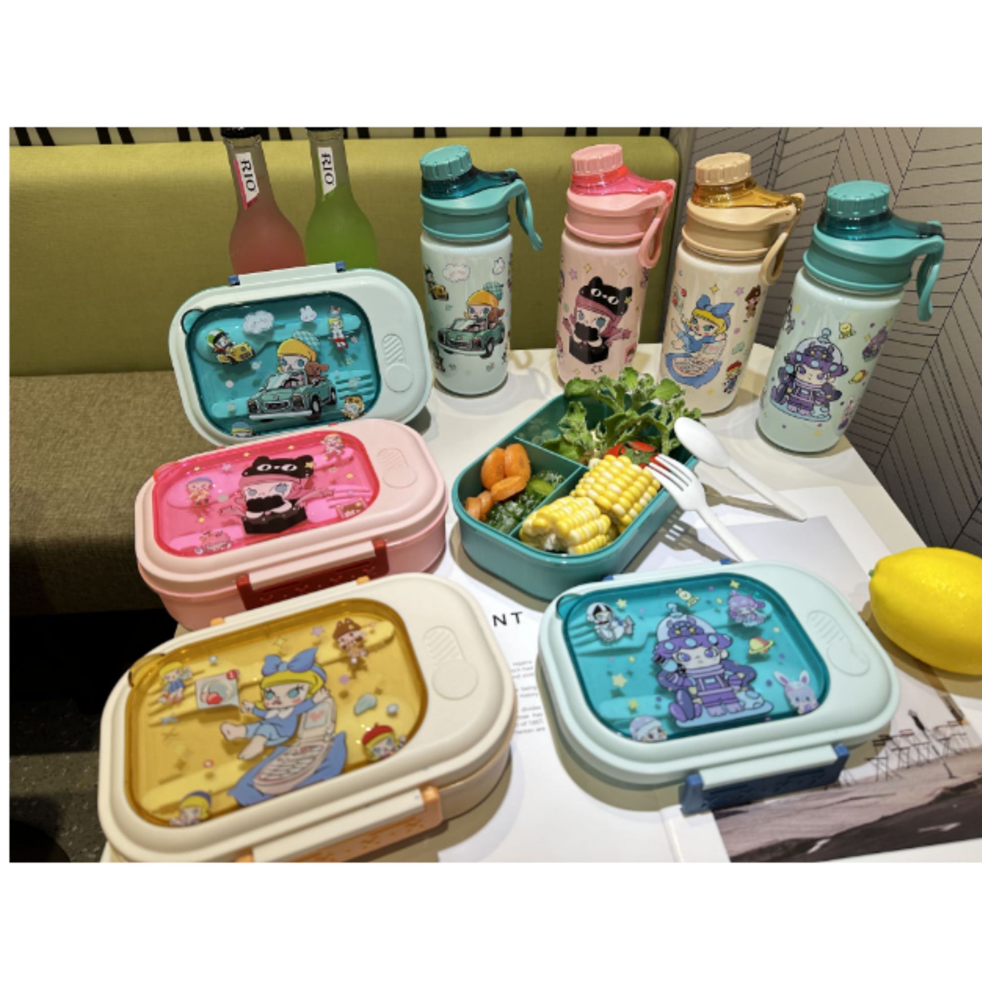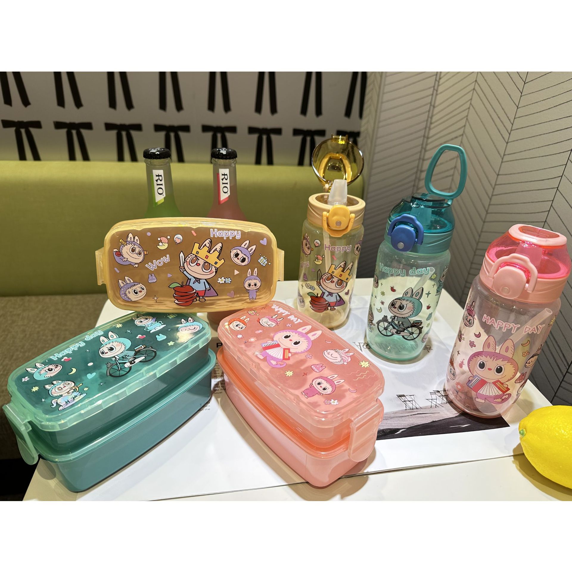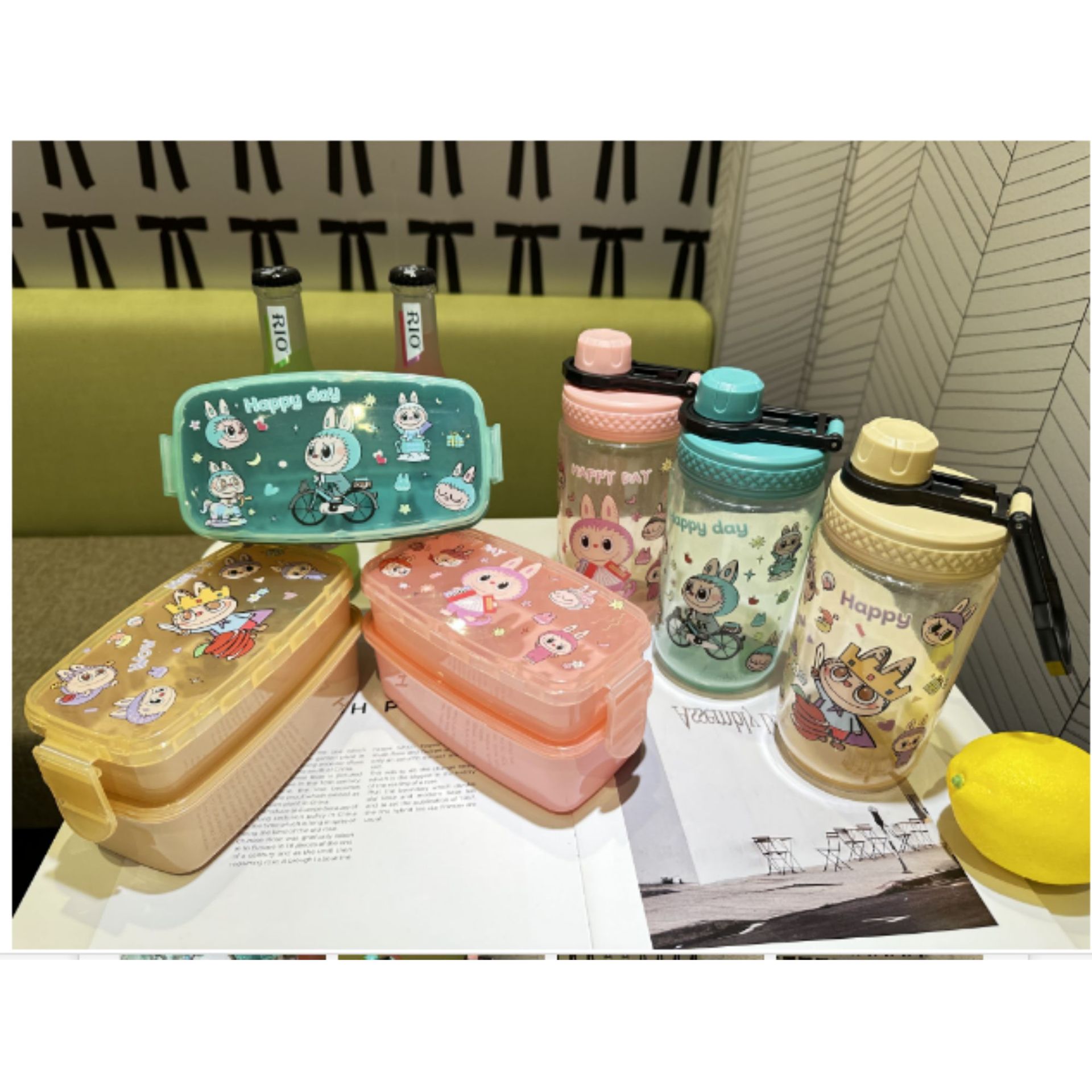1510 factory direct sales in stock cross-border foreign trade new cute hot selling children's plastic cartoon kettle-lunch box suit