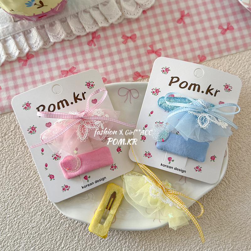 [2] blue bow barrettes