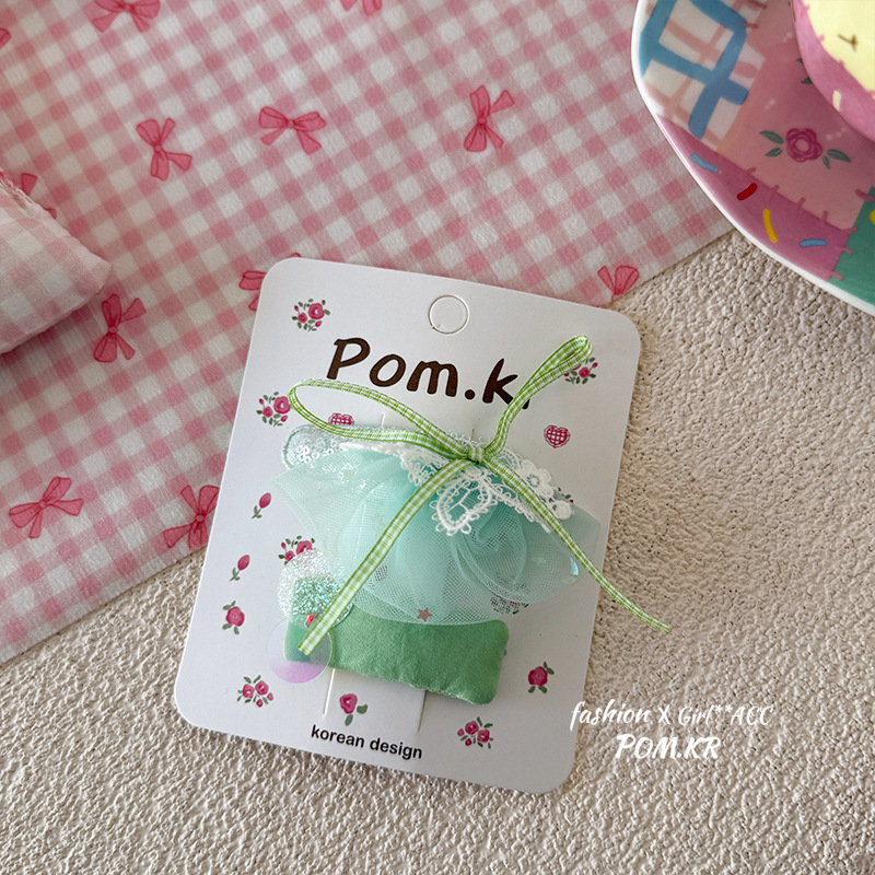 [3] green bow barrettes