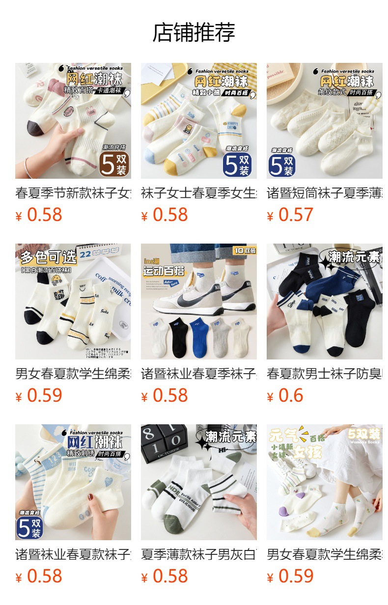 | bare socks | CN¥ 0.71 | 999078 pair available |