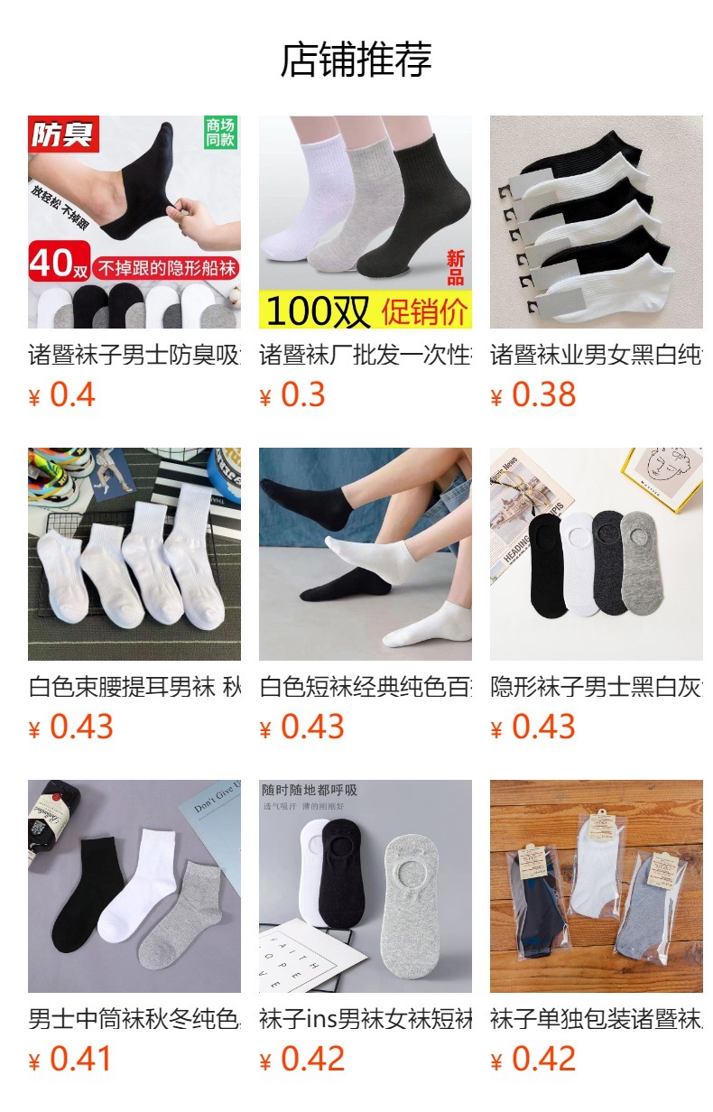 | bare socks | CN¥ 0.61 | 678638 pair available |