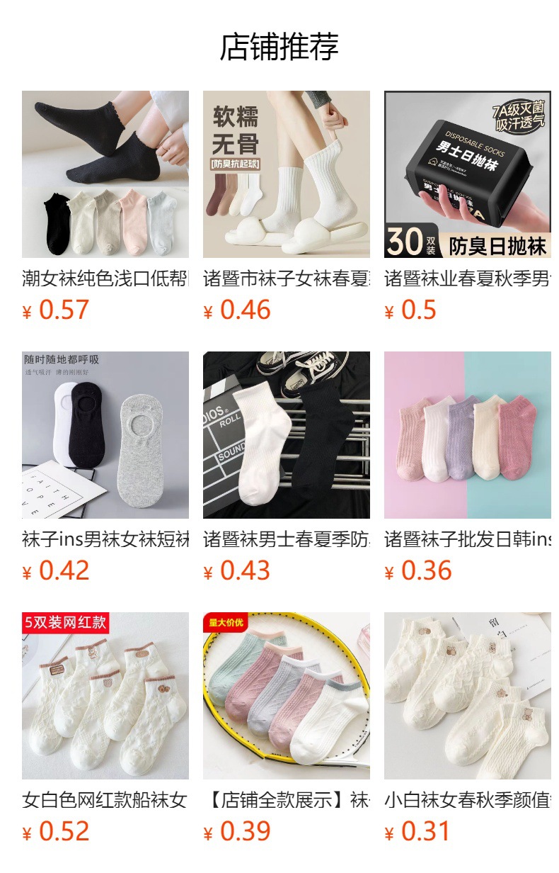 | free size [bare socks]] | CN¥ 0.59 | 7897899 pair available |