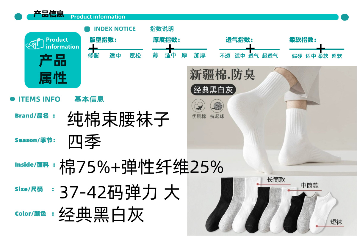 independent packaging combed cotton waist ankle socks black