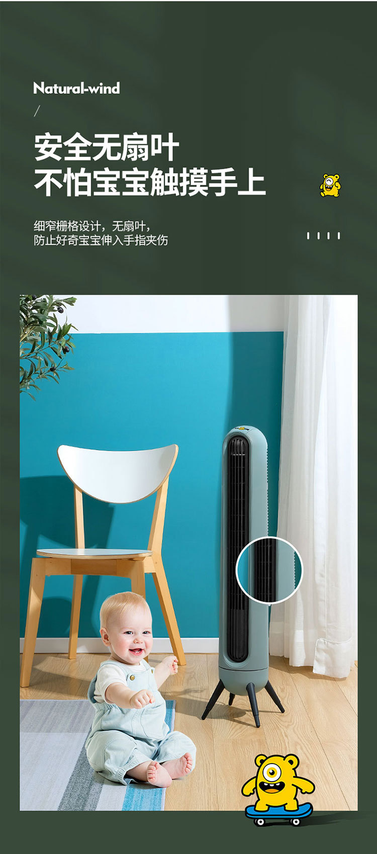 35-inch mechanical tower fan green