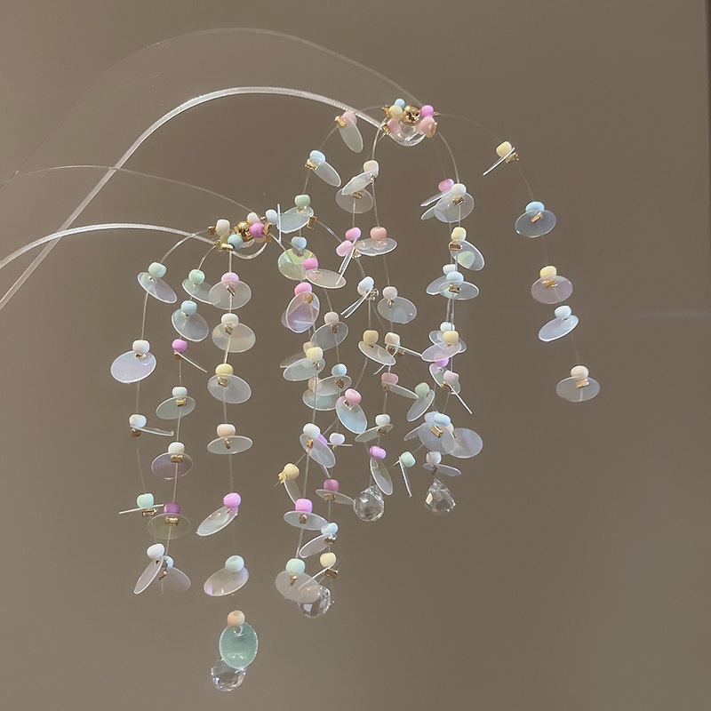 26# silver needle bead tassel ear studs
