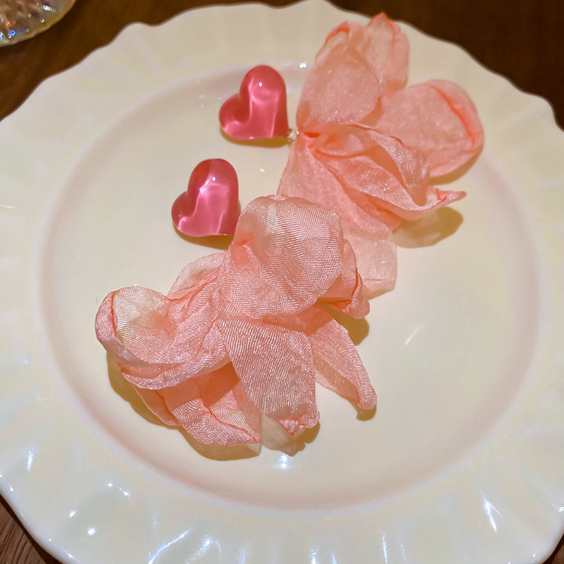 15# silver needle love heart flowers mesh ear studs