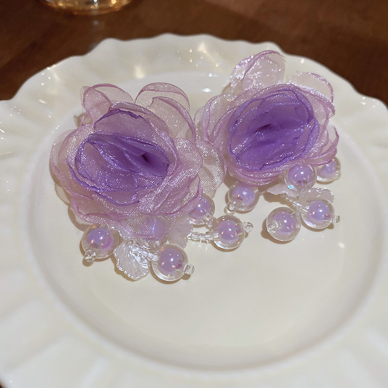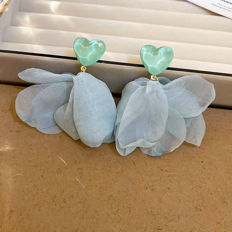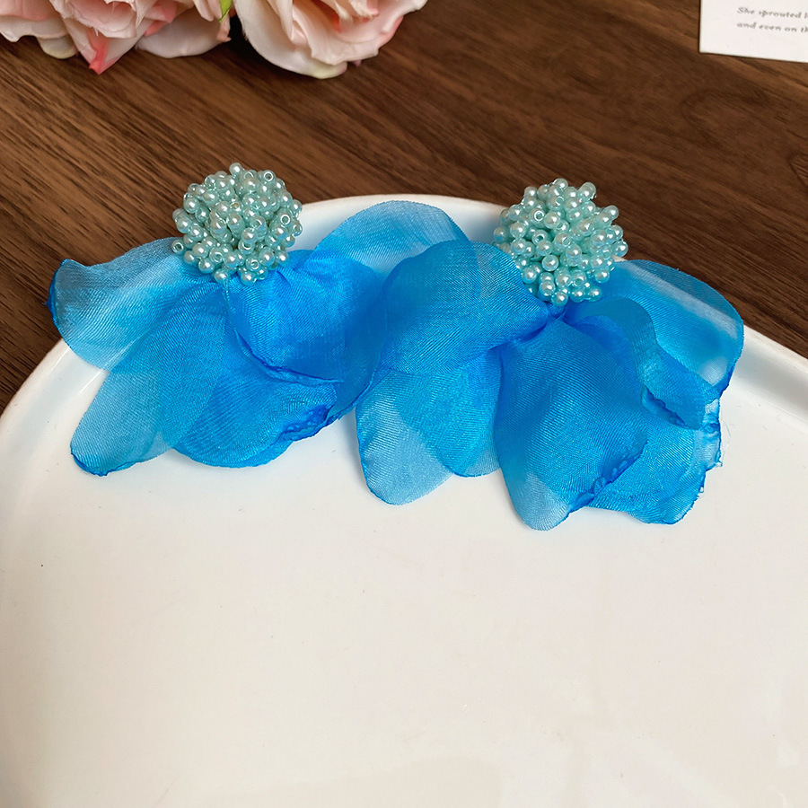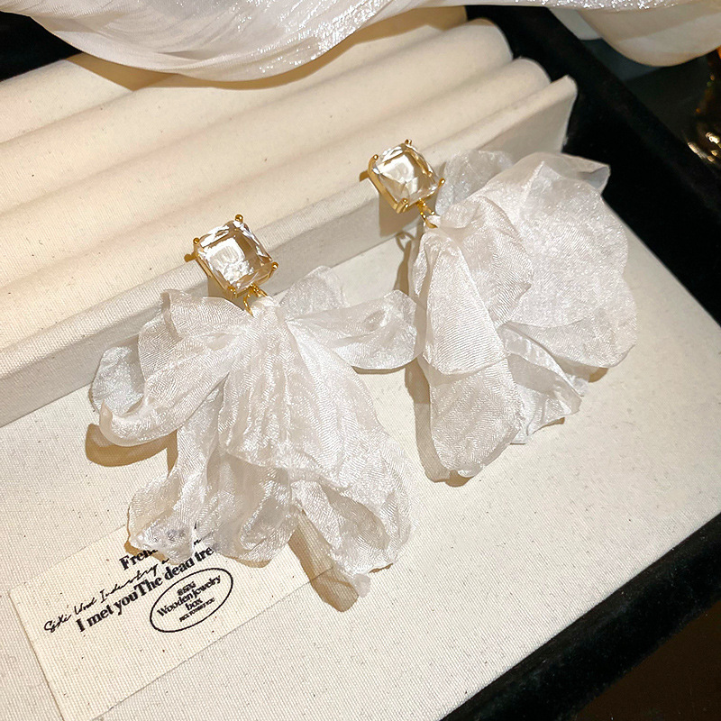 5# silver needle chiffon flower tassel ear studs