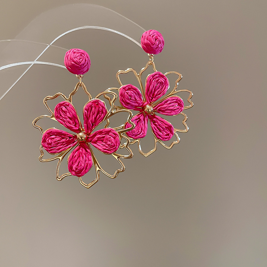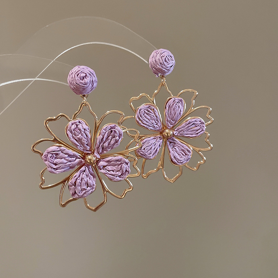44# silver needle raffia hollow flower stud earrings