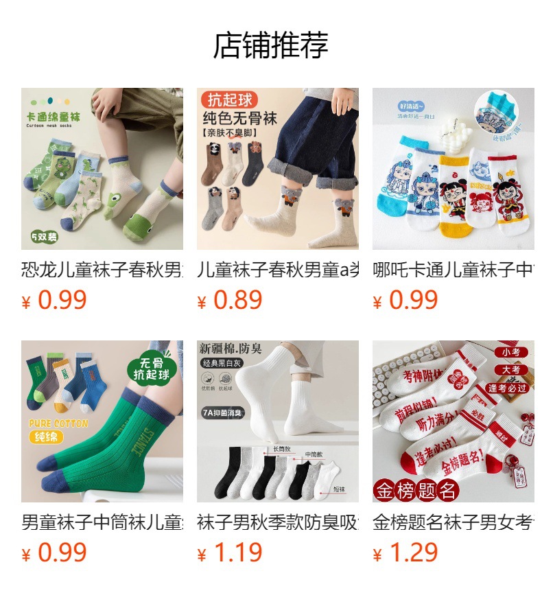 | (6-8 years old) | CN¥ 1.09 | 120000 pair available |