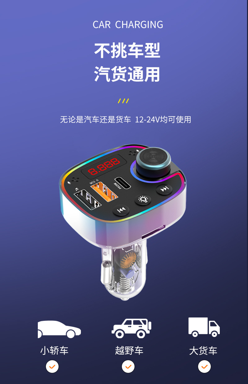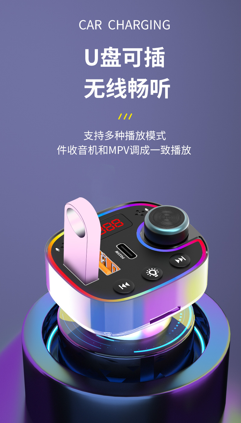 automotive mp3 player 5.3 bluetooth qc3.0 multi-function receiver audio u disk charger pd25w