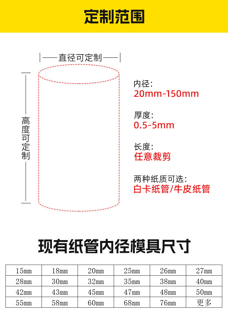 | tubes made of kraft paper; customized specifications | CN¥ 0.0 | 9190561 piece available |