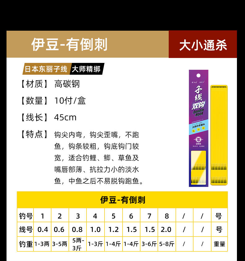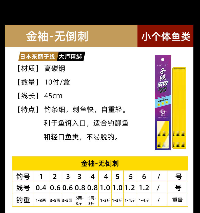 | the following is gold sleeve no thorn strand double hook | CN¥ 5.25 | 9999 piece available |