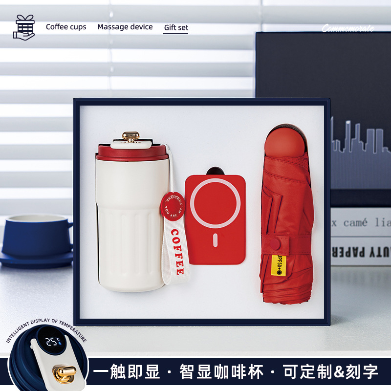 sls red-coffee cup + power bank + neck massager + umbrella