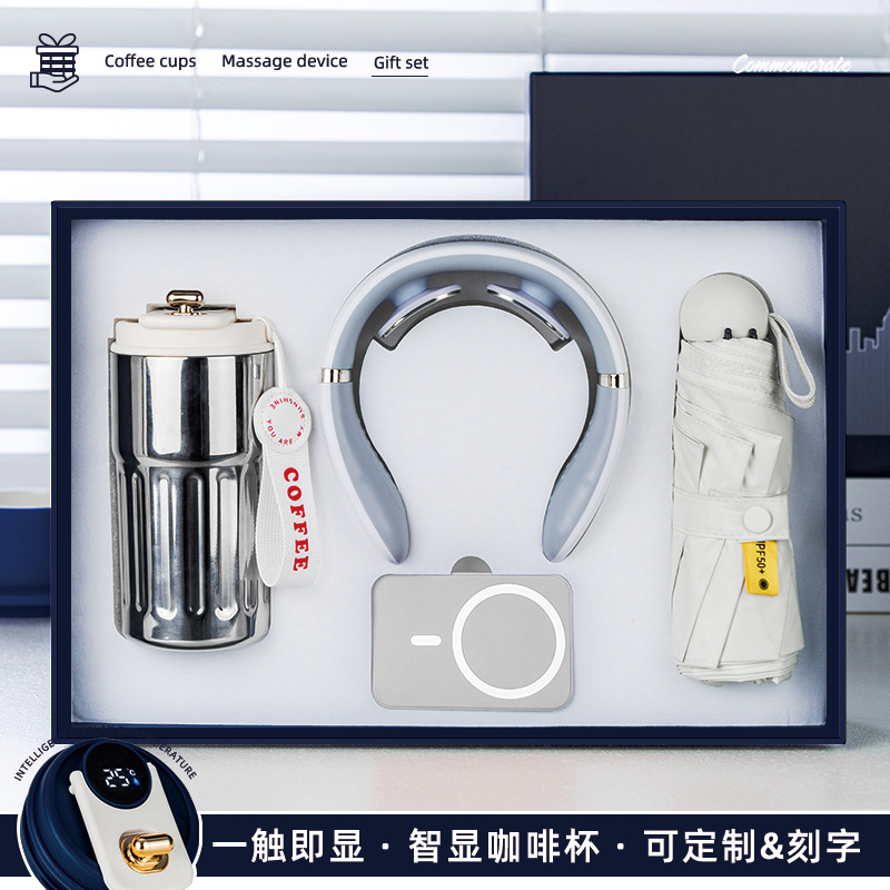 sls white-coffee cup + power bank + neck massager + umbrella