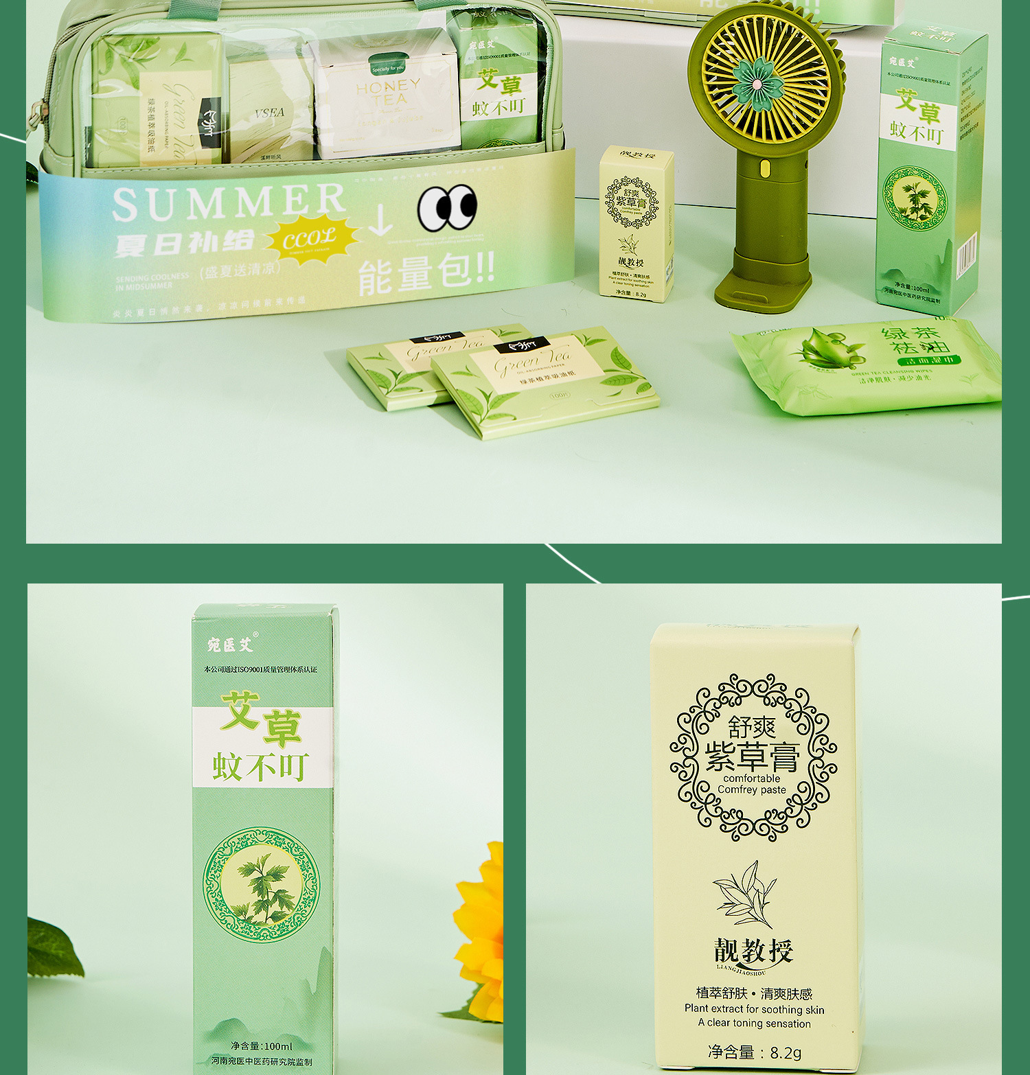 summer cool gift bag 24: cooling plaster * 2 + safeguard soap + straw cup + honey heytea + argy wormwood mosquito repellent liquid