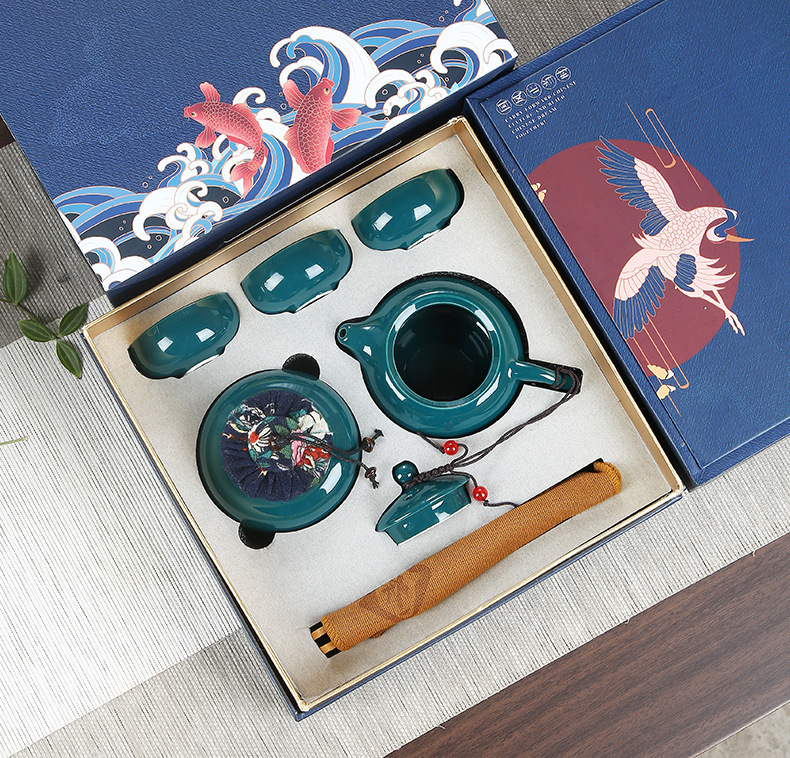 gift box six cups tea towel clip-dark green