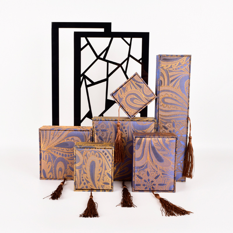 blue brocade tassel * pendant box 7.5*10*3.5
