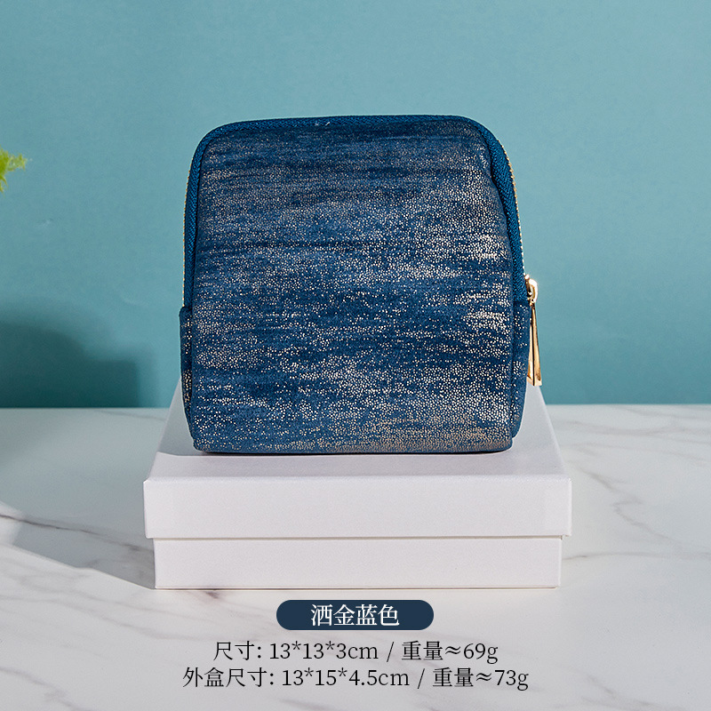 golden blue; classic style zipper bag