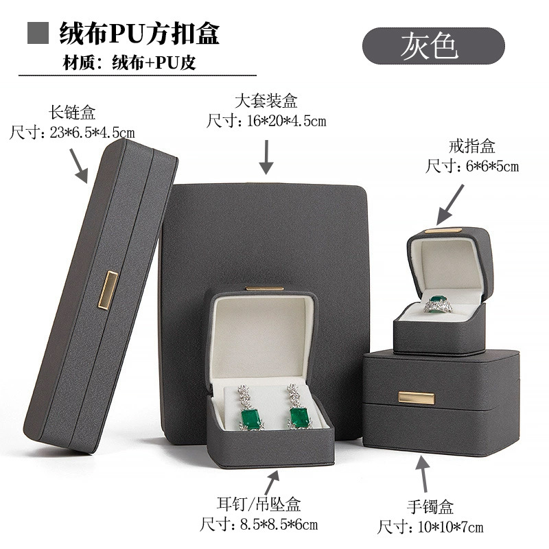 gray; ear studs/pendant box