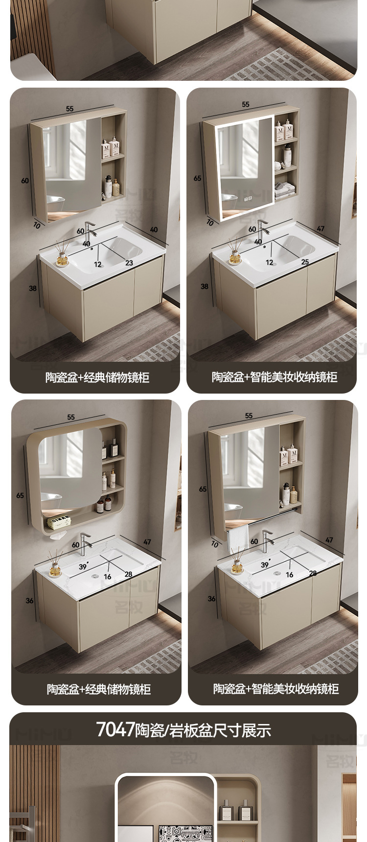 60 × 47cm (ceramic basin) double door-full set + ordinary beauty mirror cabinet