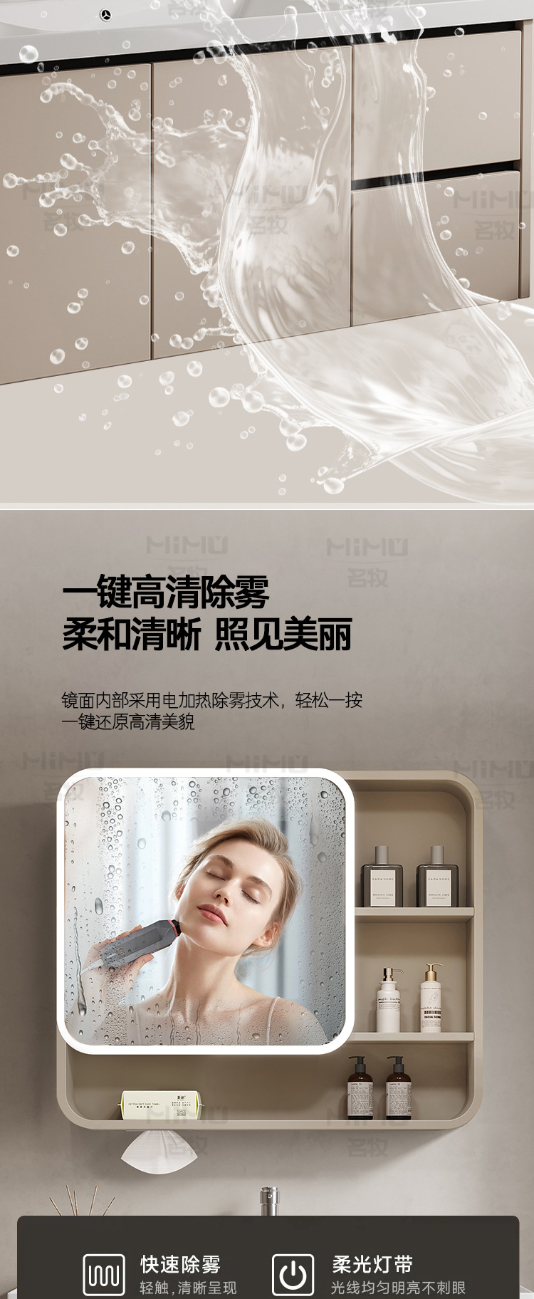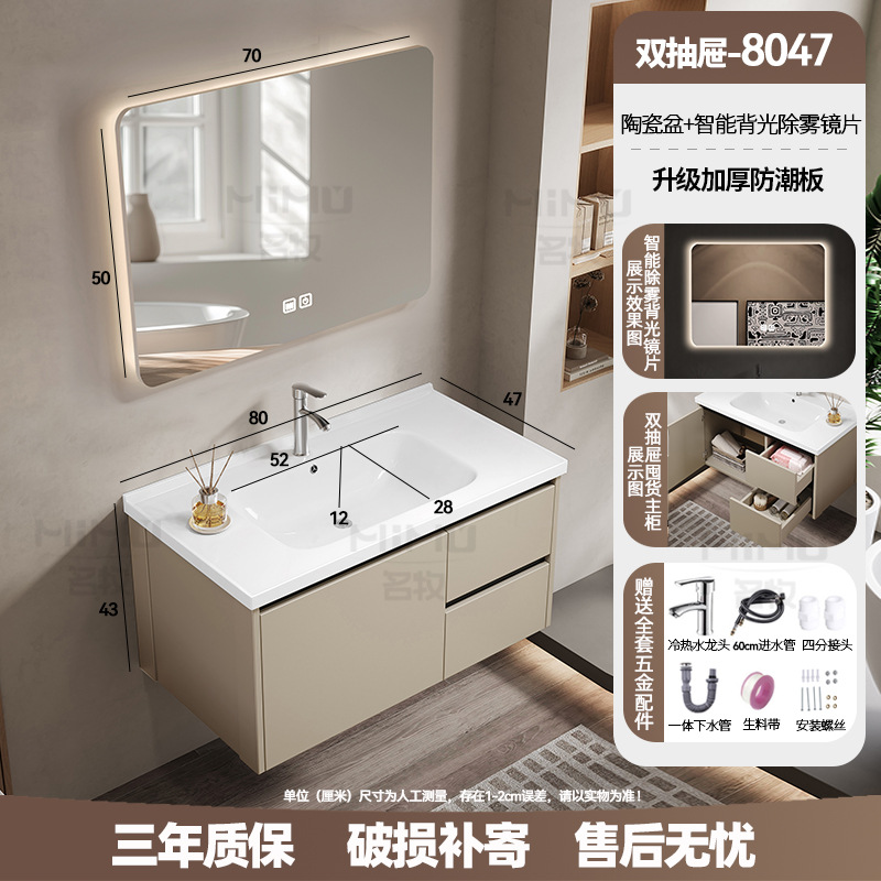 80 × 47cm (ceramic basin) double drawer-full set + smart beauty mirror cabinet
