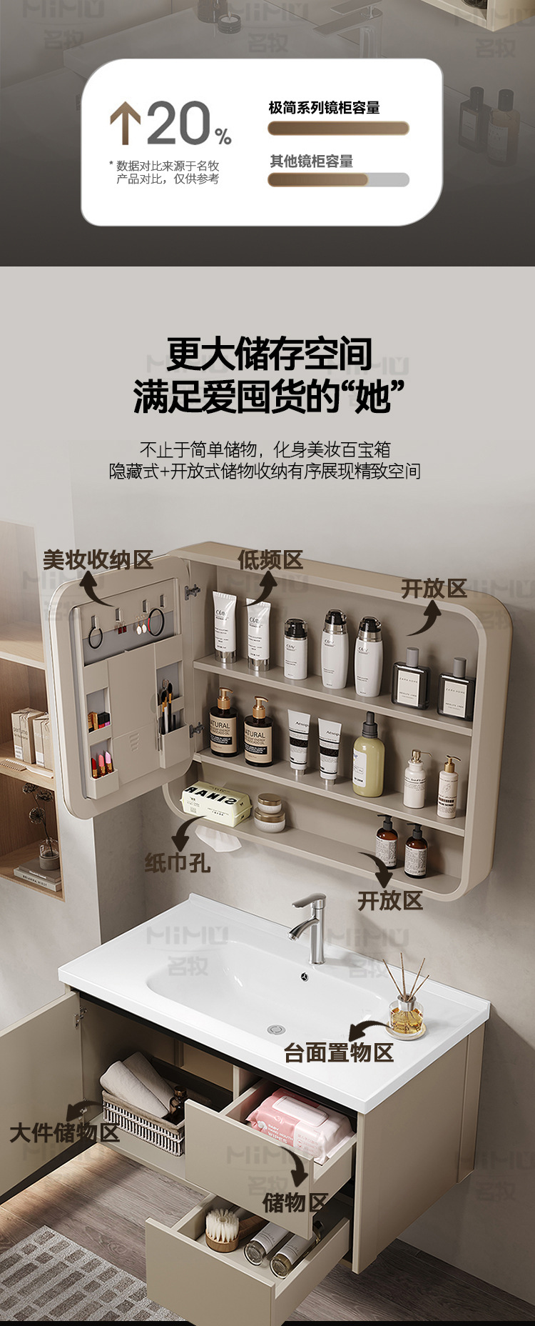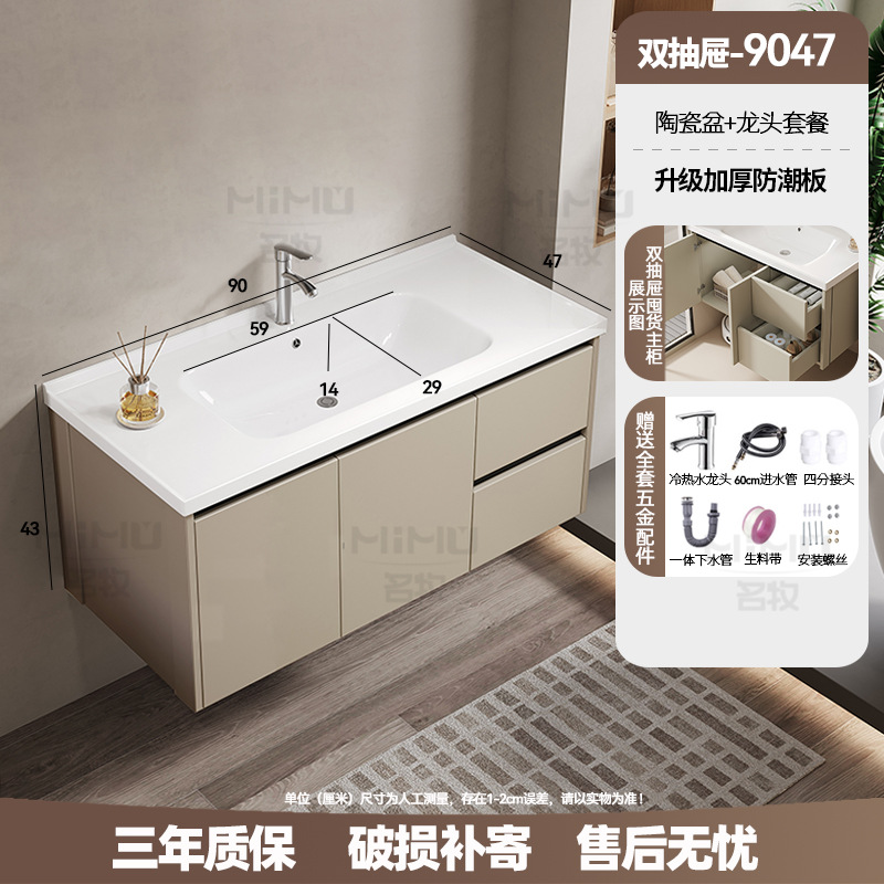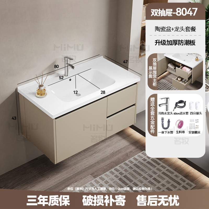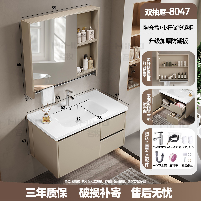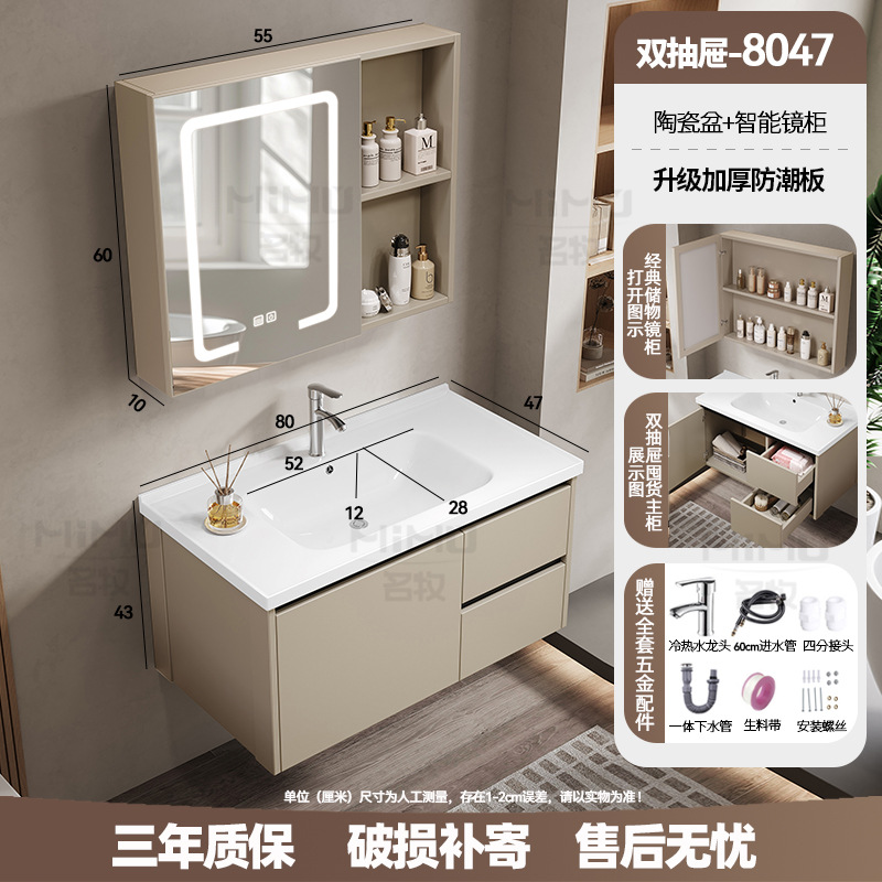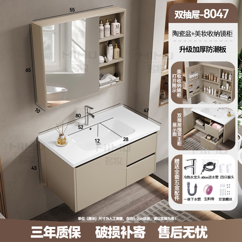 80 × 47cm (ceramic basin) double drawer-full set + ordinary beauty mirror cabinet