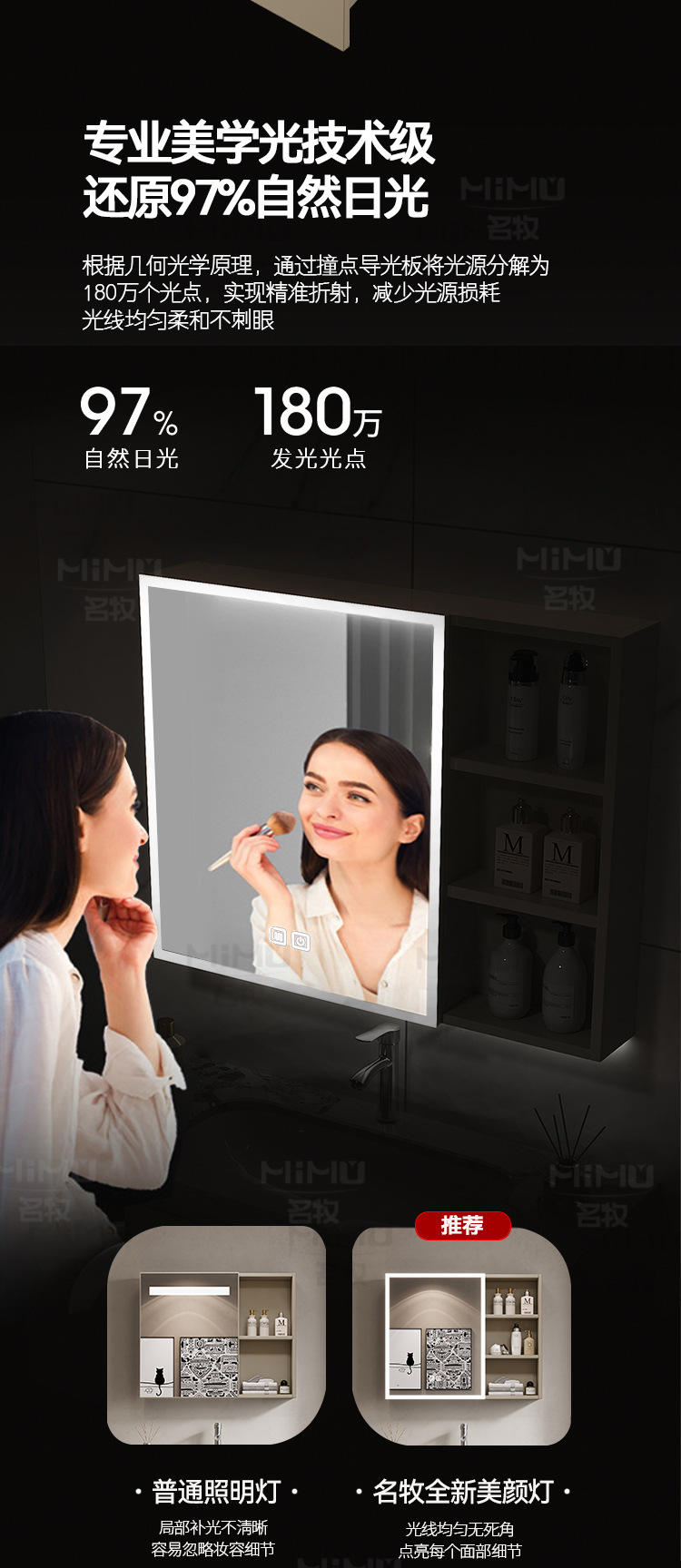 80 × 47cm (ceramic basin) double door-full set + smart arc half sealed mirror cabinet