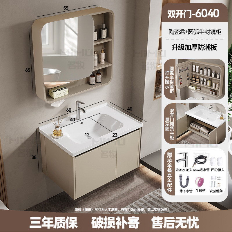 60 × 40cm (ceramic basin) double door-full set + ordinary arc half sealed mirror cabinet