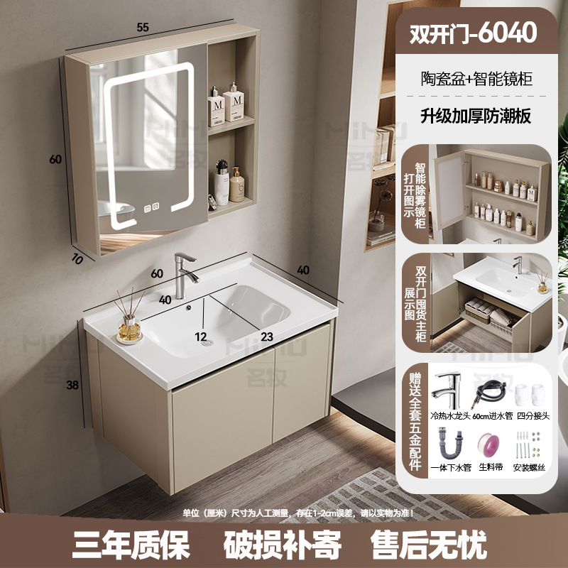 60 × 40cm (ceramic basin) double door-full set + smart beauty mirror cabinet
