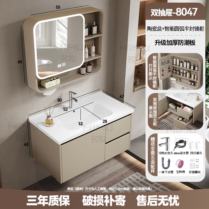 80 × 47cm (ceramic basin) double drawer-full set + ordinary arc half sealed mirror cabinet