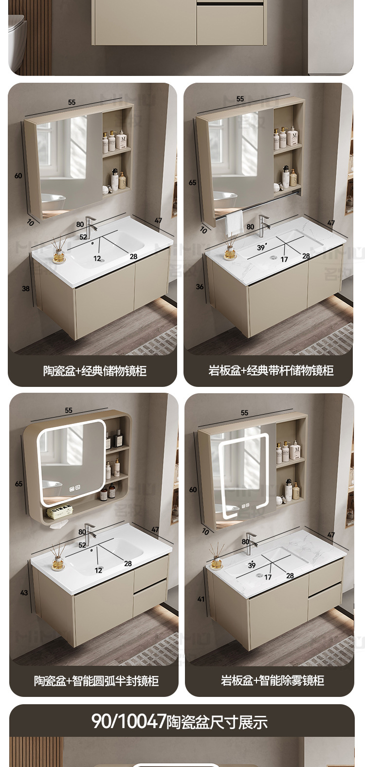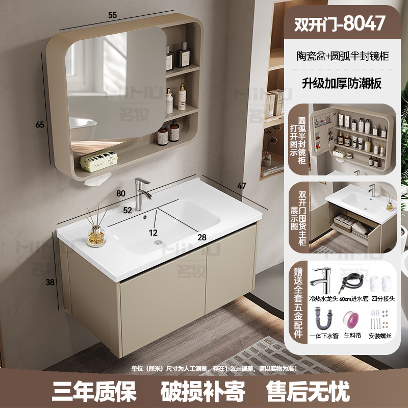 80 × 47cm (ceramic basin) double door-full set + ordinary arc half sealed mirror cabinet